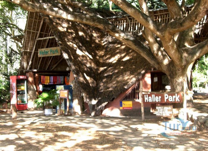 Халлер Парк, ранее известный как Природная Тропа Бамбури, расположен в Кении, на побережье Индийского океана, на территории бывшего известнякового карьера цементного завода Bamburi Cement Ltd. За десятилетия эксплуатации природных ресурсов и добычи кораллового известняка, территория рядом с заводом превратилась в безжизненную пустыню с солончаками. Руководством концерна было принято решение о реабилитации безжизненного карьера и создании на его территории природного парка. За эту, казалось бы, невыполнимую задачу в 1971 году взялся швейцарский эколог и естествоиспытатель доктор Рене Халлер. В первую очередь необходимо было найти растения, которые смогли бы прижиться на этой пустынной земле. Из 26 видов деревьев, отобранных доктором Халлером, принялись только 3 - кокосовая пальма, конокарпус и казуарина хвощевидная. Были высажены 3000 саженцев, постепенно начали приживаться и другие виды. Плодородие почвы стало восстанавливаться, сейчас в парке растут около 180 видов деревьев и кустарников. Первыми представителями животного мира, которые "поселились" в парке, стали многоножки. Их появление вызвало цепную реакцию - лес стали заселять насекомые, птицы и животные, многие из которых завозились из разных уголков страны. Сейчас в Халлер парке обитают бегемоты, жирафы, буйволы, обезьяны, крокодилы, сернобыки, антилопы, зебры. Одновременно с восстановлением леса Рене Халлер начал работы по реабилитации водной системы парка - были созданы озёра, пруды и болота, которые соединяются между собой каналами и протоками, что обеспечивает свободную миграцию водных организмов. Позднее был создан заповедник, здесь в большом пруду живут бегемоты и множество водоплавающих птиц. В парке также созданы рыбная и крокодиловая фермы, есть ботанический сад, сад пальм и парк рептилий. Халлер парк - одна из самых известных достопримечательностей Кении, ежегодно его посещают около 160000 туристов. Их поток значительно возрос после того, как в 2004 году в парке приютили молодого бегемота Оуэна, выброшенного цунами на пляж Малинди. В парке бегемотик неожиданно обрёл семью - его "усыновила" 130-летняя черепаха Мзи. Эта трогательная история получила большой резонанс, и посмотреть на странное семейство в парк приходят как жители Кении, так и иностранные гости. Для посетителей в Халлер парке оборудованы туристические маршруты, смотровая площадка, профессиональные гиды проводят экскурсии на английском, французском, немецком и итальянском языках, есть магазины и ресторан.