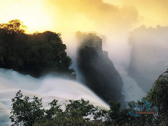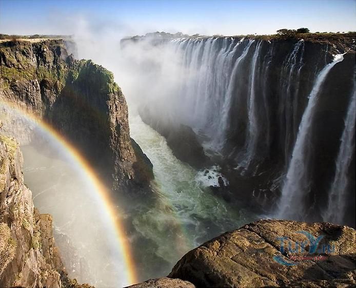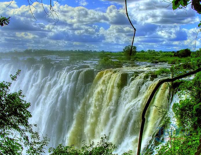 Водопад Виктория – великолепный шедевр природы, расположен на реке Замбези в Южной Африке, на границе Зимбабве и Замбии. Ширина водопада примерно 1800 метров, а высота 108 метров. Река Замбези создаёт гремящий водопад, вода которого низвергается в узкую расщелину шириной 100 метров. При этом образуется водяной завес, протяженностью почти 2 километра. Во время полноводья на реке Замбези, пять миллионов литров воды каждую секунду обрушиваются в пропасть. При этом образовываются облака пара, которые можно наблюдаться на расстоянии 40 километров от водопада. В брызгах водопада образуются восхитительные радуги, поднимающиеся на высоту до 300 метров – лунные радуги. Открыт водопад был в 1855 году английским врачом и миссионером Дэвидом Ливингстоном. Он назвал его в честь королевы Англии – Виктория. Местные жители называли его Мосио-ао-Тунья – «Гремящий дым» и очень боялись к нему приближаться. Отважного Ливингстона сопровождало 300 воинов одного из местных племён, но подойти к водопаду рискнули только двое из них. На протяжении нескольких лет после открытия водопад не посещался людьми, пока в 1905 году сюда не провели железную дорогу. Сейчас это одна из самых посещаемых достопримечательностей и любимое развлечение многих туристов из разных уголков мира. Водопад Виктория входит в список Всемирного наследия ЮНЕСКО. Местные жители, перестав его бояться, стали предлагать множество экскурсий к водопаду. Здесь можно наблюдать тонны гремящей воды с высоты, пролетая прямо над водопадом на вертолёте. Кроме того, для отчаянных туристов предлагаются прыжки с вершины водопада в узкую расщелину. Ещё одно увлекательное развлечение на Виктории - купание в естественном бассейне, который от бездонной пропасти отделяет узкая перемычка. Это место на вершине водопада называют «Дьявольским бассейном» и многие смельчаки решаются покупаться в нём и сделать головокружительные снимки. Это возможно сделать лишь в сухой сезон - с сентября по декабрь, когда уровень воды в реке сильно падает. В остальное время Водопад Виктория – это великолепное природное чудо, поражающее воображение путешественников своей мощью и величием.