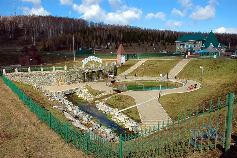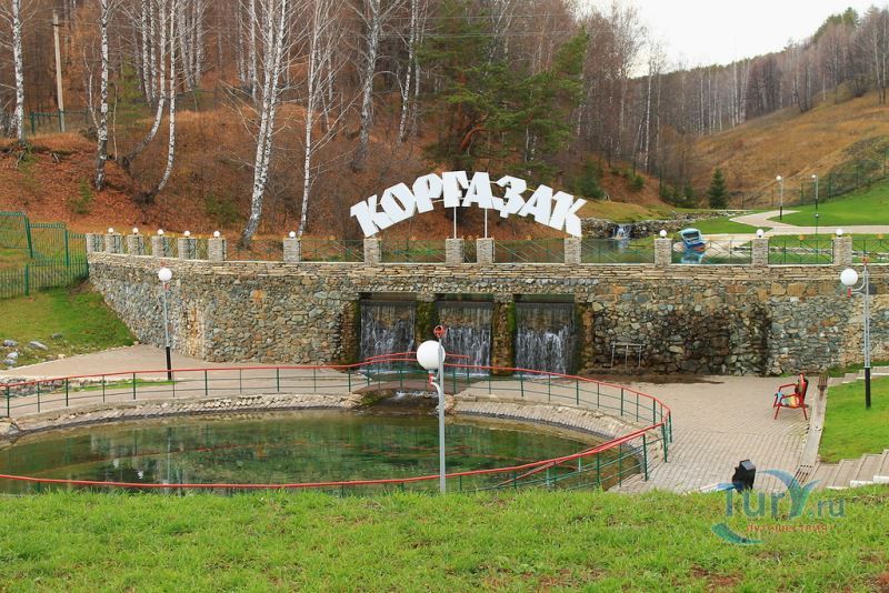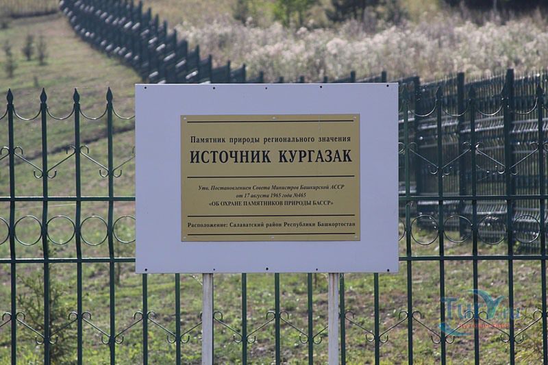 Минеральный источник "Кургазак" является гидрологическим памятником природы Республики Башкортостан. Он находится в Салаватском районе в деревне Комсомол. Вода поднимается по тектоническому разлому с глубины 600 - 800 метров и выходит на поверхность из отрогов горы Каратау. Слабоминерализованная вода "Кургазак" классифицируется как гидрокарбонатная кальциево-магниевая и имеет постоянную температуру +16 °C. За богатый химический состав ее называют "живой водой". В ней содержатся: железо, марганец, фосфор, цинк, медь, титан, бериллий, молибден, хром, кремний.