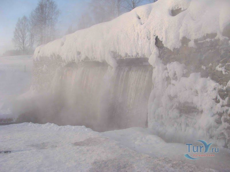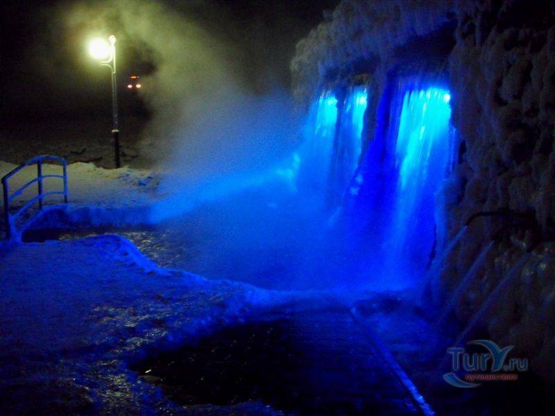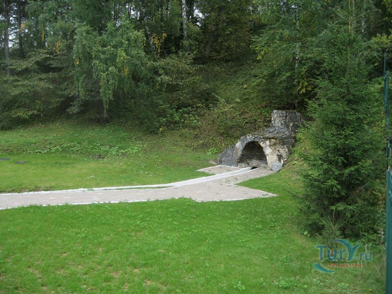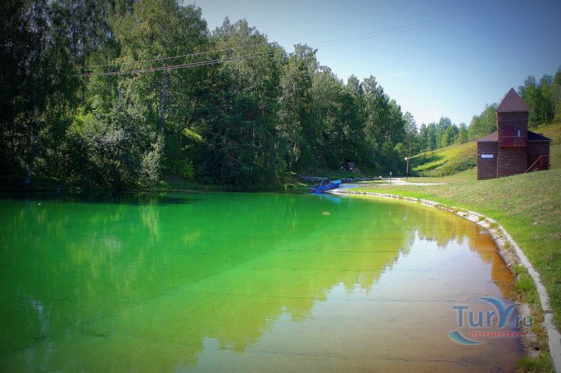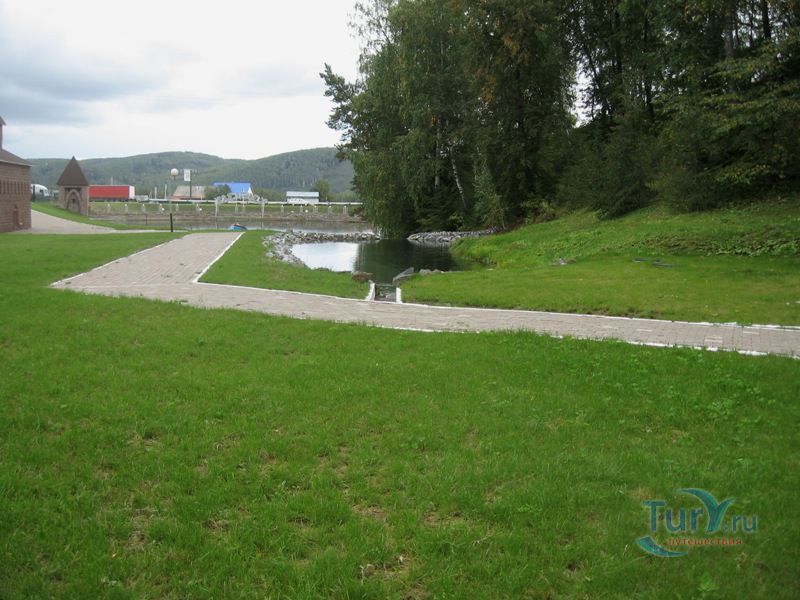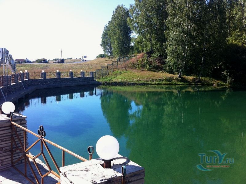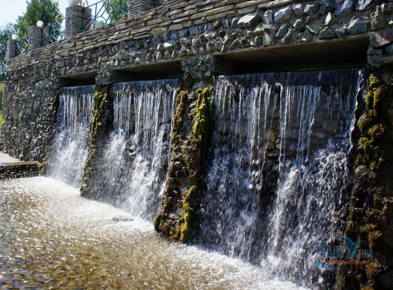 Вода из источника собирается в небольшое, искусственно созданное озеро, из которого вытекает водопадом. Рядом с водопадом установлено несколько кранов, из которых люди набирают минеральную воду. После водопада вода стекает в бассейн для купания, дальше через небольшой туннель под дорогой впадает в реку Юрюзань.