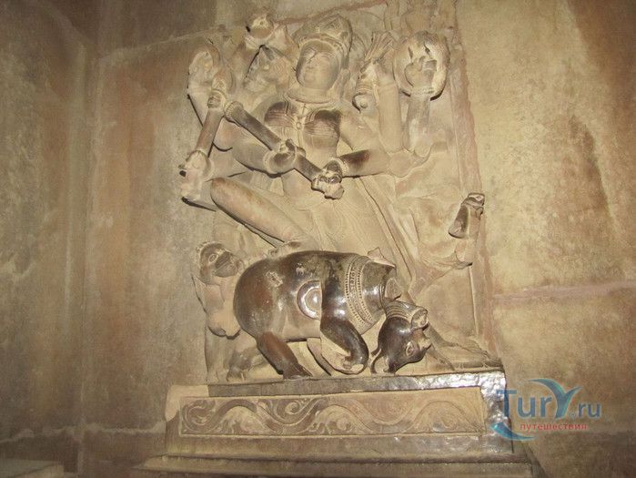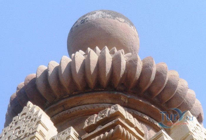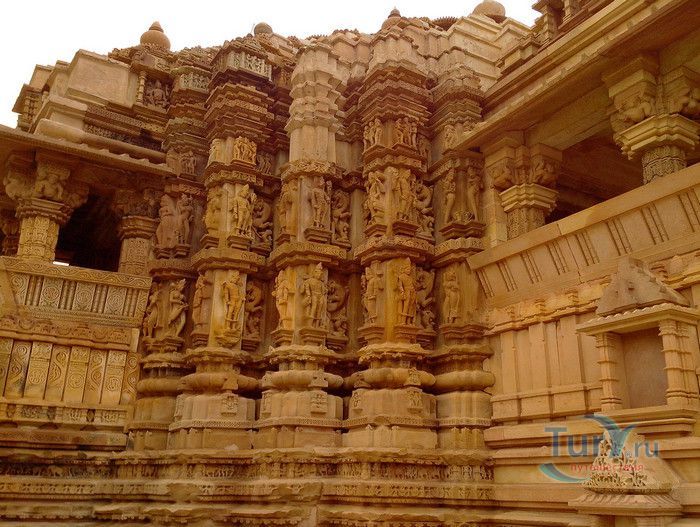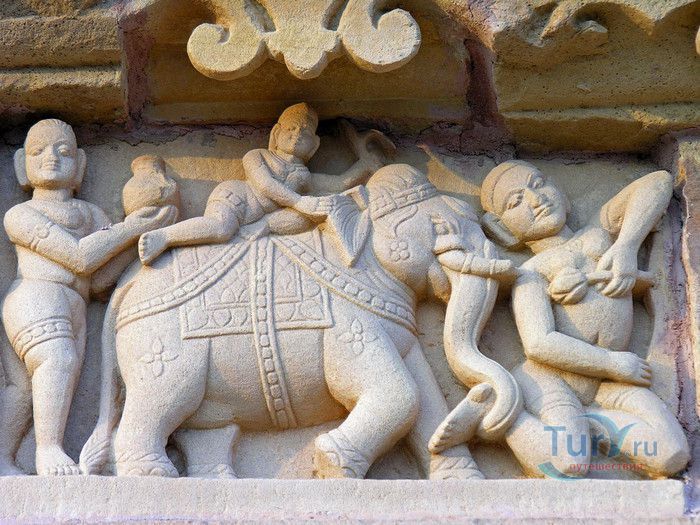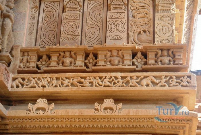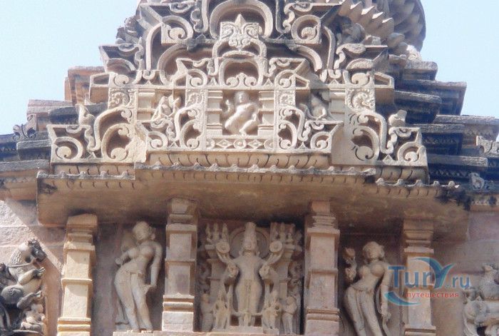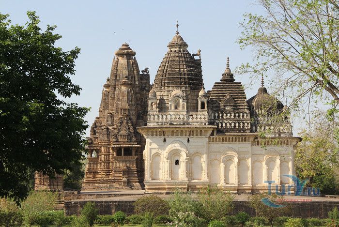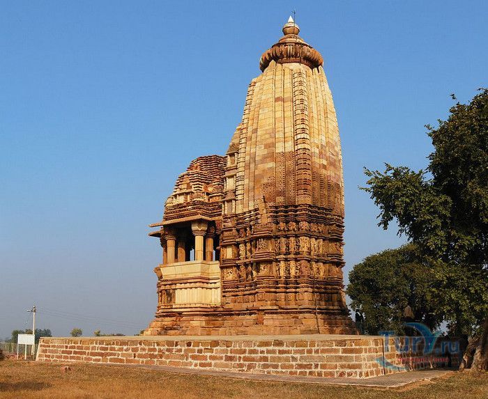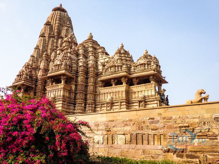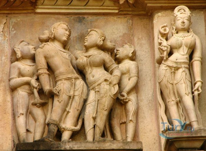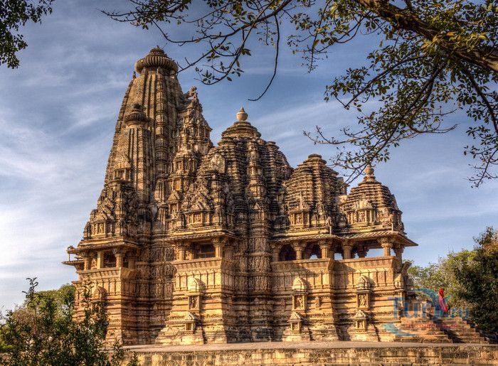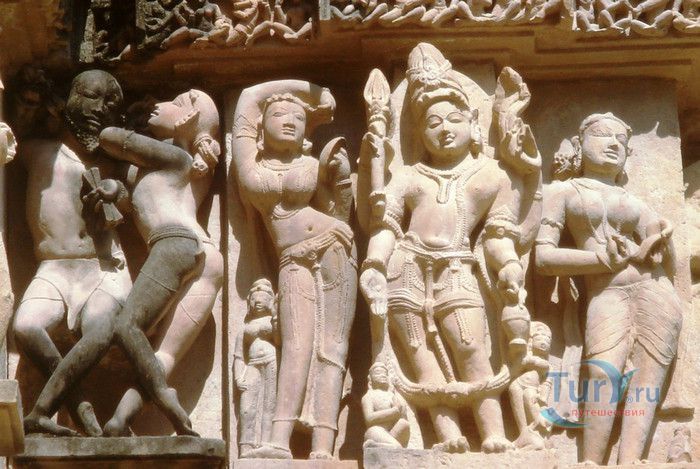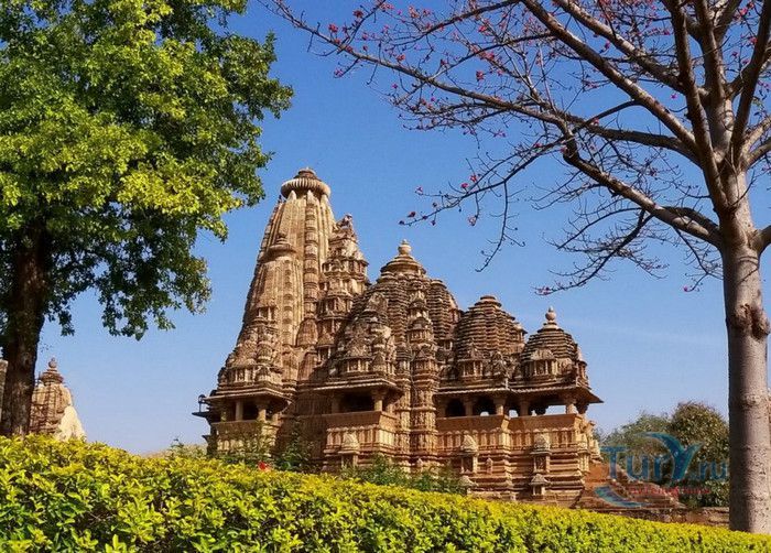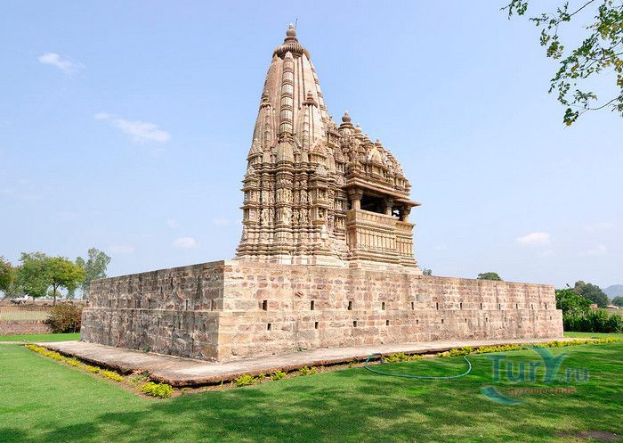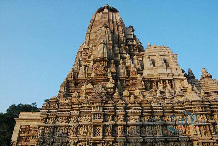 Группа храмов в Кхаджурахо, объект Всемирного наследия ЮНЕСКО, - великолепный образец искусства и храмовой архитектуры средневековой Индии. Комплекс храмов расположен в индийском штате Мадхья-Прадеш, в небольшом городке Кхаджурахо. Храмы были построены в 950 - 1050 годах, во время правления в Центральной Индии могущественной династии Чандела. Кхаджурахо считался культурной и религиозной столицей государства, в течение 100 лет в городе были возведены 85 храмов, до наших дней сохранились лишь 22. После заката династии Чандела в XIII веке Кхаджурахо словно исчез с лица земли, а величественный храмовый комплекс поглотили джунгли. Лишь в 1838 году Кхаджурахо был вновь открыт британским военным инженером Бертом, исследовавшим эту местность. Храмы Кхаджурахо построены рядом друг с другом, но представляют две различные религии - брахманизм (ранняя форма индуизма) и джайнизм, символизируя традицию принятия и уважения различных религиозных взглядов среди индусов и джайнов. Комплекс делится на три зоны - западную, восточную и южную. Наиболее представительная и хорошо сохранившаяся - западная группа (храмы Лакшмана, Варахи, Лакшми, Кандария-Махадевы, Джагадамби, Читрагупта (бога Солнца), Висванатха и святилище Нанди). Ближе к озеру расположена восточная группа (индуистские храмы Брахмы, Ваманы и Джавари и три джайнистских храма Гхантай, Адинатха и Паршванатха). Южная группа состоит из двух храмов - Дуладео и Чатурбхуджа. Храмы выполнены из гранита и песчаника, при строительстве не использовались какие-либо растворы, блоки укладывались один на другой и соединялись при помощи пазов и выступов. Каждый храм стоит на высокой каменной платформе-террасе и ориентирован по сторонам света. По периметру платформы и над центральным святилищем высятся высокие пирамидальные башни-шикхары. Их "нагромождение" создаёт иллюзию горной гряды Западного Тибета и священной горы Кайлас - обители Шивы и других богов. Шикхары и стены храмов украшены множеством барельефов и скульптур, изображающих сцены повседневной жизни, войны, ритуальные процессии и эротические сцены. Несмотря на то, что храмы Кхаджурахо получили мировую известность благодаря изображениям сцен плотской любви, на самом деле их доля не превышает 10% всех рельефов. Каджурахо можно назвать своеобразной каменной энциклопедий средневекового индийского общества и учения Тантры. В знаменитом романе Ивана Ефремова "Лезвие бритвы" описанию храмов посвящено немало восторженных слов: "Необъяснимое волнение охватило художника при виде высоких сикхар - башен над святилищами, собравшихся группами на фоне голубых столообразных гор в запыленном мареве горячего воздуха, плававшего над серой равниной" и "Можно показать женщину совершенно обнаженной и в то же время кристально чистой и благородно прекрасной. Можно изобразить страсть так, что в ней не будет ничего аморального, да посмотрите вы как следует на те же скульптуры Кхаджурахо".