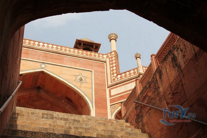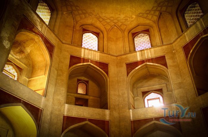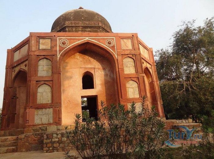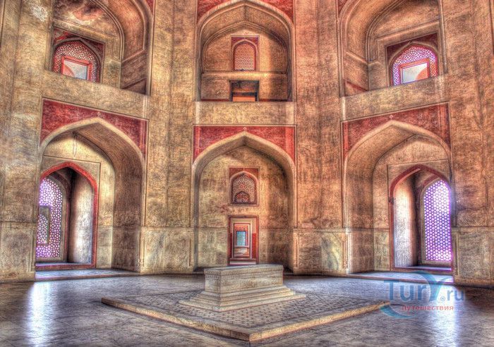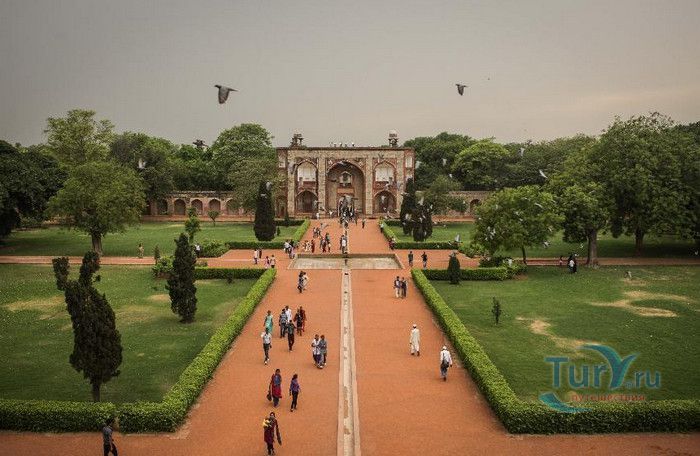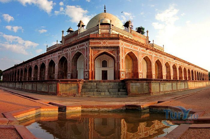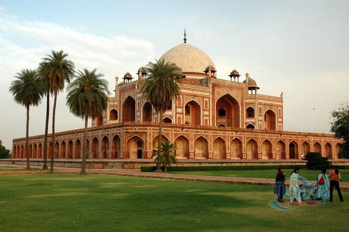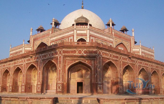 Гробница Хумаюна - величественный мавзолей-сад правителя империи Великих Моголов, императора Хумаюна, построенный по заказу его вдовы Хамиды Бану Бегум через 14 лет после смерти супруга. Мавзолей расположен в восточной части Дели, на берегу реки Ямуна, недалеко от Старого форта. Работы велись с 1569 по 1572 год, на строительство усыпальницы было потрачено 1,5 миллиона рупий. Гробница построена в персидском и индийском архитектурных стилях по проекту архитектора Мирака Мирзы Гияса. Мавзолей представляет собой целый комплекс зданий, расположенных в красивом саду с бассейнами, соединёнными искусственными каналами. Основное здание - гробница Хамаюха находится в центре сада. Здание установлено на большой квадратной платформе, выполнено из красного песчаника, отделано чёрным и белым мрамором. В плане мавзолей имеет форму неправильного восьмиугольника, по центру здание венчает двойной купол, украшенный декоративными мраморными кронштейнами. Фасад по всему периметру оформлен арочными сводами, глубоко утопленными в стены, украшен резьбой и орнаментом. Высота гробницы равна 47 метрам, ширина - 91 метр. Могила императора находится под центральным залом, а в главном зале, открытом для посещения, установлен кенотафий из белого мрамора (так называемый парадный саркофаг - памятник) правителя. Зал с кенотафием находится под центральным куполом, стены разделены на ярусы с рядами арочных окон, украшенных ажурными решётками "джали". Первоначальное внутренне убранство гробницы не сохранилось до наших дней, но есть описание очевидцев - зал был украшен богатыми персидскими коврами, над саркофагом висел небольшой шатёр, здесь же находились меч Хумаюна, его Коран и личные вещи. Позже в мавзолее были установлены еще несколько саркофагов, в которых покоятся жёны Хумаюна (в том числе и Хамида Бану Бегум) и несколько последующих могольских императоров. Всего на территории гробницы Хамаюна находятся 150 могил. На территории сада расположены несколько зданий - гробницы Иса Хана Ниязи, Бу Халима, Барбера, Нила Гумбад (Голубой купол) и другие, есть также павильоны и купальня. Сад обнесен каменным забором с трёх сторон, с четвёртой стороны сад вплотную примыкал к реке Ямуна, которая в наши дни протекает дальше, изменив со временем своё русло. С целью сохранения архитектурного памятника в 1993 году гробница Махаюна была внесена в список Всемирного наследия ЮНЕСКО. Наполовину разрушенный вандалами и разграбленный мавзолей был полностью реконструирован в 1999-2003 годах, обновлён сад, в котором было высажено около 2500 деревьев и разбиты новые газоны, отремонтированы фонтаны, восстановлены каналы и система водоснабжения. Сегодня гробница Хумаюна является одним из наиболее хорошо сохранившихся могольских архитектурных памятников и одной из главных достопримечательностей Дели.