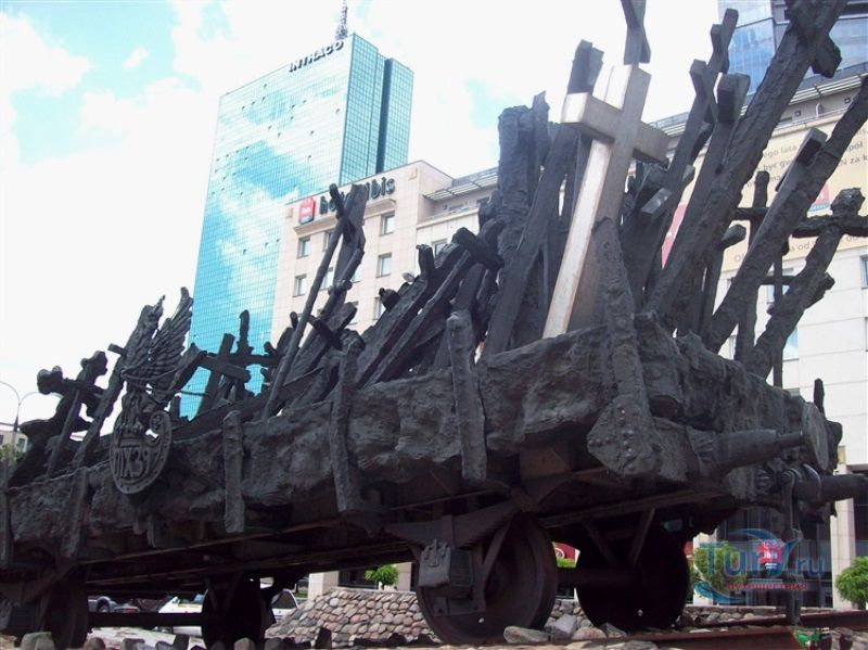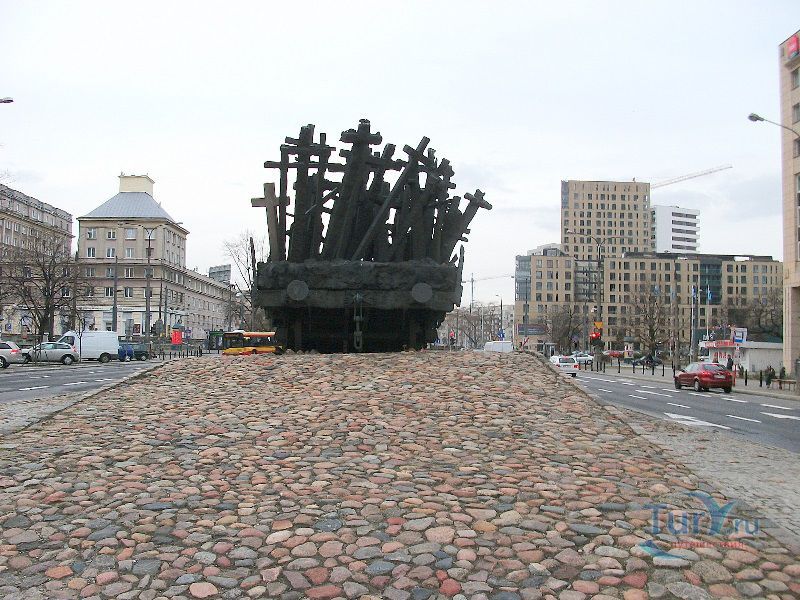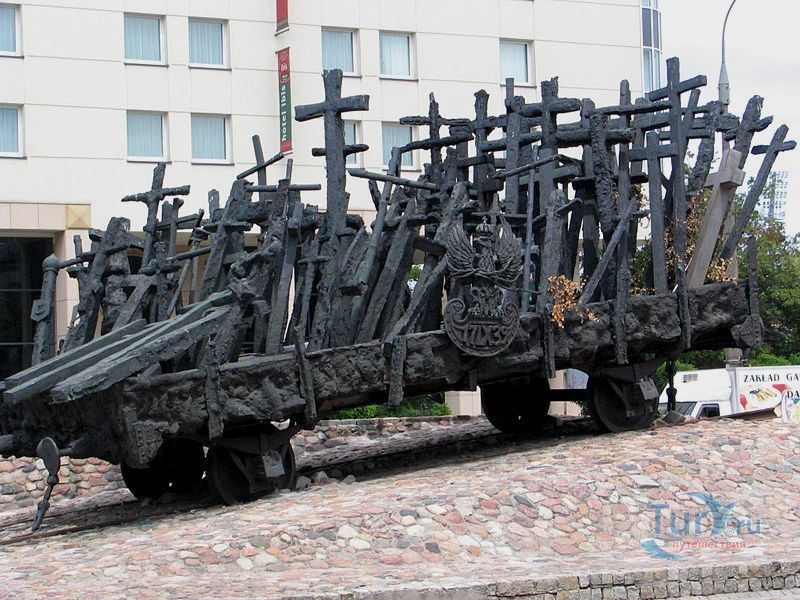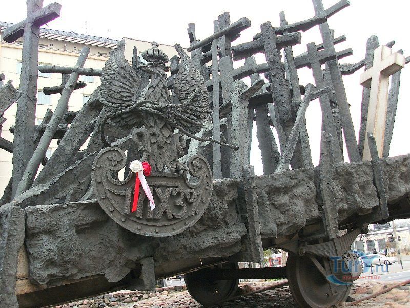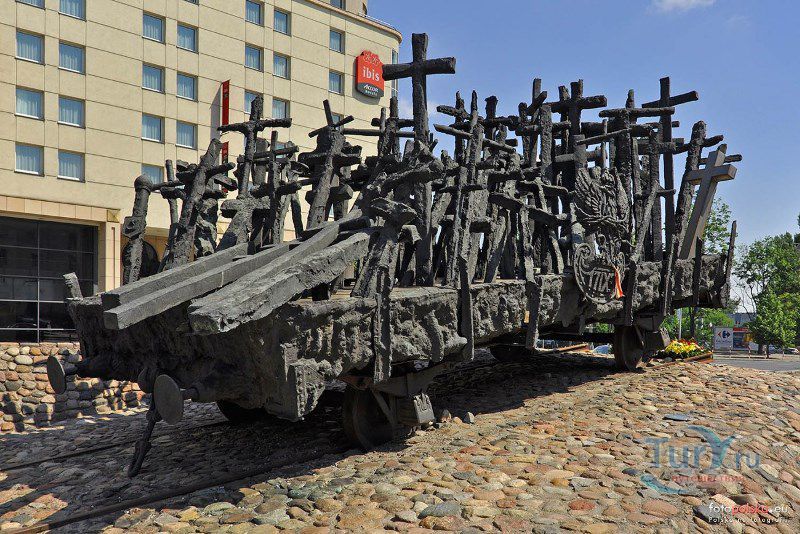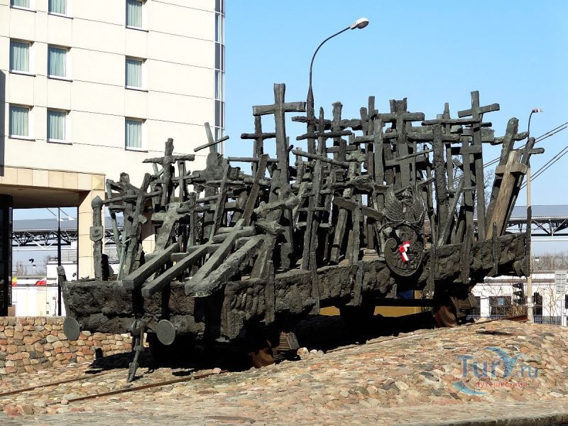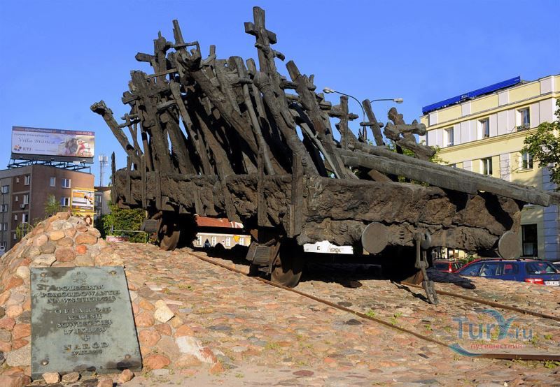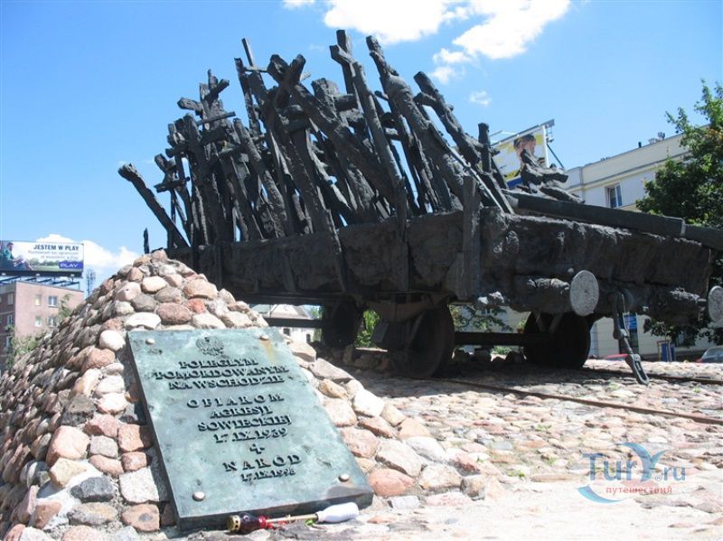 Памятник павшим и убитым на Востоке расположен в Варшаве, на перекрёстке улиц Мурановская и Генерала Владислава Андерса. Торжественное открытие памятника состоялось 17 сентября 1995 года, в день 56-ой годовщины советской агрессии против Польши. Выполнен памятник в бронзе по проекту известного скульптора Максимилиана Бискупского, в память о трагической судьбе польского народа, вывезенного и погибшего на территории Советского Союза во время Второй мировой войны. Полмиллиона польских солдат, около 25 тысяч офицеров были убиты в лесах Катыни Смоленской области. Также производилась массовая депортация польского гражданского населения на территорию Советского Союза, в исправительно-трудовые лагеря Сибири. Было вывезено около миллиона польских граждан. 80% польских жителей были гражданами еврейской национальности. Памятник изготовлен в виде железнодорожной платформы, установленной на рельсах и нагруженной католическими и православными крестами, а также еврейскими и мусульманскими символами. Один из крестов изображён в память о священнике Стефане Недзелаке, активисте расследования катынских событий, который был убит в 1989 году при загадочных обстоятельствах. Также на платформе установлены Крест Доблести и Национальная эмблема в виде польского орла с верёвкой вокруг него, ниже расположена надпись с датой вторжения советских войск в Польшу. На шпалах написаны названия советских городов, которые были ареной преступлений, совершённых СССР против поляков в 1939-1940 годах. Ухаживают за памятником ветеранские организации и члены Федерации катынских семей - польской неправительственной организации, созданной в 1992 году. Туда входят активисты катынских семей со всей Польши. В 1999 году у подножия Памятника павшим и убитым на Востоке во время своего паломничества по Польше молился Иоанн Павел ІІ, а в 2006 году во время паломнической поездки по Польше Папа Римский Бенедикт ХVІ на папамобиле проехал рядом с памятником по пути от аэропорта к Варшавскому Собору.