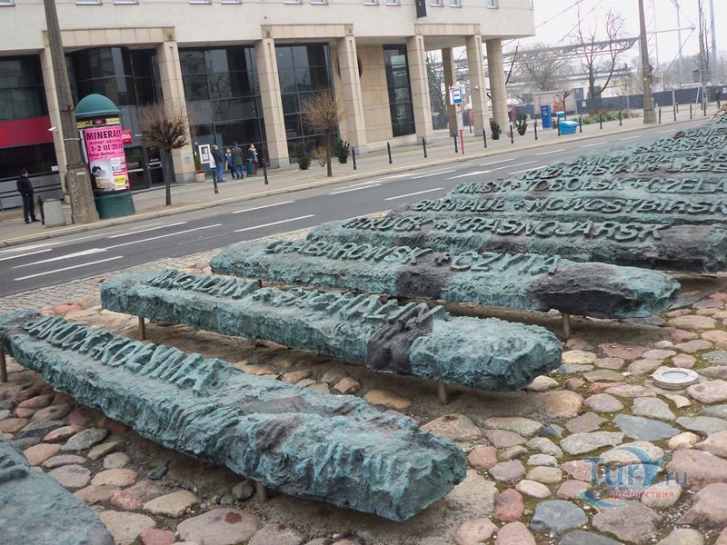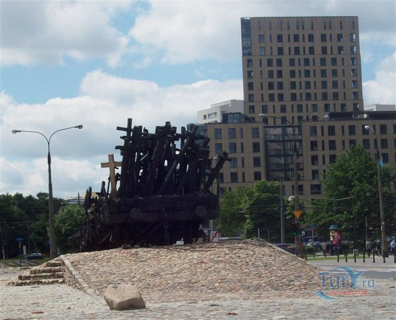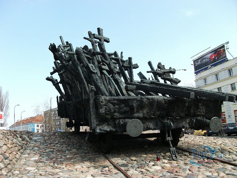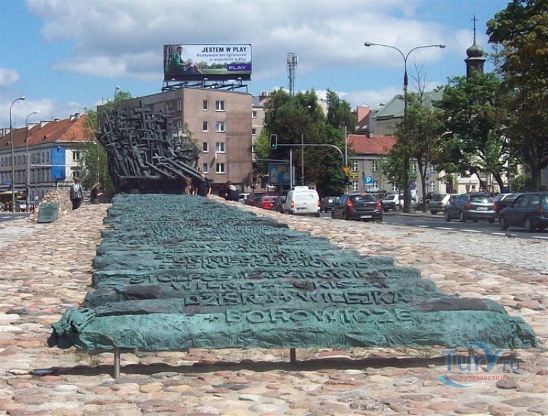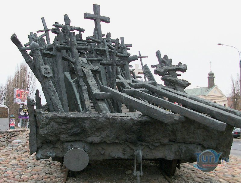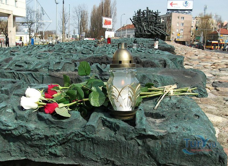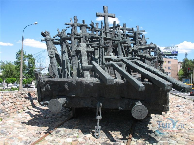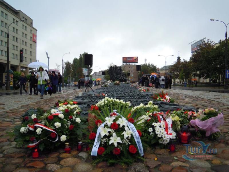 Памятник павшим и убитым на Востоке расположен в Варшаве, на перекрёстке улиц Мурановская и Генерала Владислава Андерса. Торжественное открытие памятника состоялось 17 сентября 1995 года, в день 56-ой годовщины советской агрессии против Польши. Выполнен памятник в бронзе по проекту известного скульптора Максимилиана Бискупского, в память о трагической судьбе польского народа, вывезенного и погибшего на территории Советского Союза во время Второй мировой войны. Полмиллиона польских солдат, около 25 тысяч офицеров были убиты в лесах Катыни Смоленской области. Также производилась массовая депортация польского гражданского населения на территорию Советского Союза, в исправительно-трудовые лагеря Сибири. Было вывезено около миллиона польских граждан. 80% польских жителей были гражданами еврейской национальности. Памятник изготовлен в виде железнодорожной платформы, установленной на рельсах и нагруженной католическими и православными крестами, а также еврейскими и мусульманскими символами. Один из крестов изображён в память о священнике Стефане Недзелаке, активисте расследования катынских событий, который был убит в 1989 году при загадочных обстоятельствах. Также на платформе установлены Крест Доблести и Национальная эмблема в виде польского орла с верёвкой вокруг него, ниже расположена надпись с датой вторжения советских войск в Польшу. На шпалах написаны названия советских городов, которые были ареной преступлений, совершённых СССР против поляков в 1939-1940 годах. Ухаживают за памятником ветеранские организации и члены Федерации катынских семей - польской неправительственной организации, созданной в 1992 году. Туда входят активисты катынских семей со всей Польши. В 1999 году у подножия Памятника павшим и убитым на Востоке во время своего паломничества по Польше молился Иоанн Павел ІІ, а в 2006 году во время паломнической поездки по Польше Папа Римский Бенедикт ХVІ на папамобиле проехал рядом с памятником по пути от аэропорта к Варшавскому Собору.