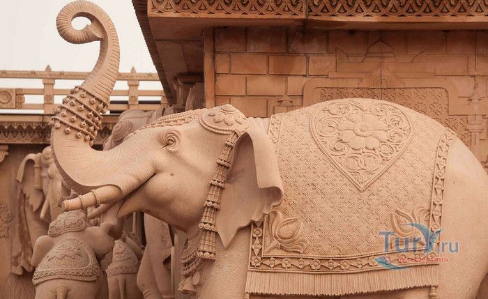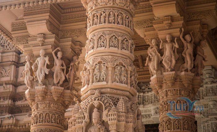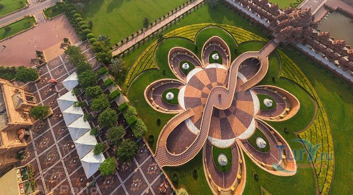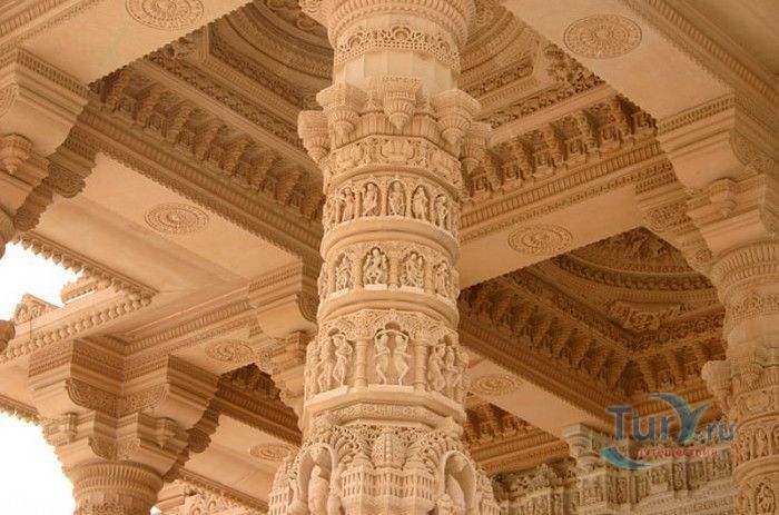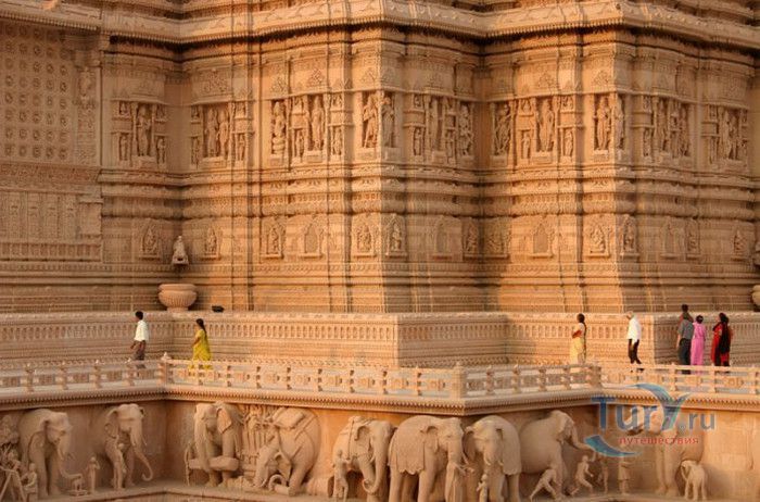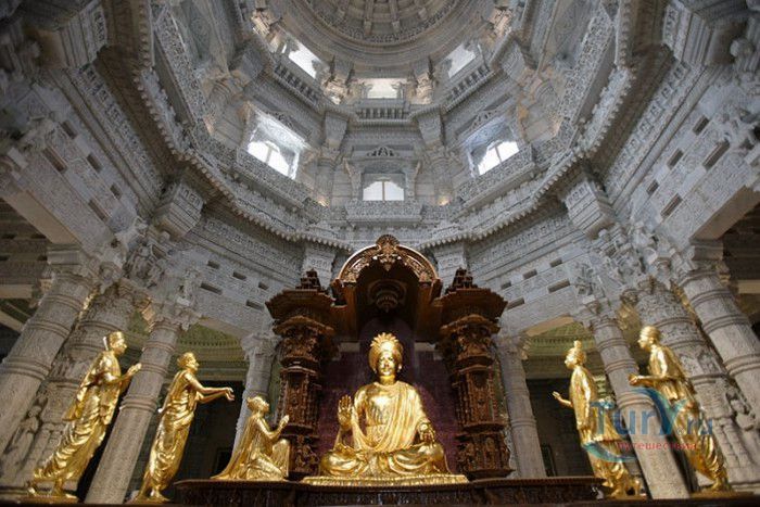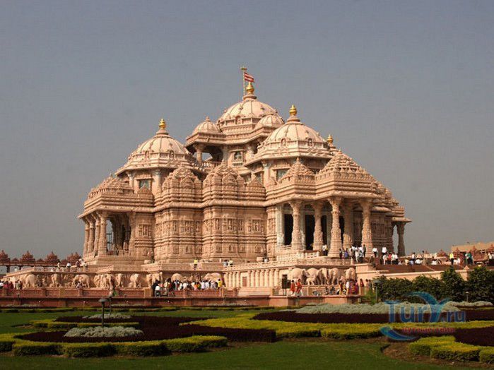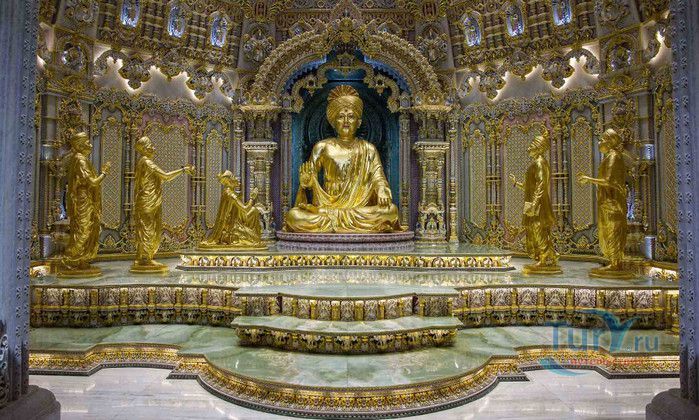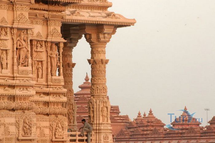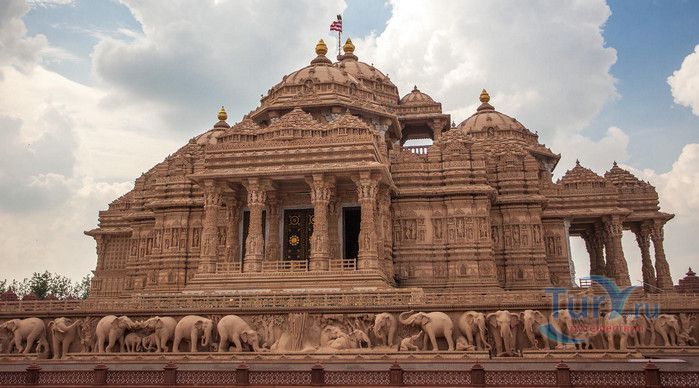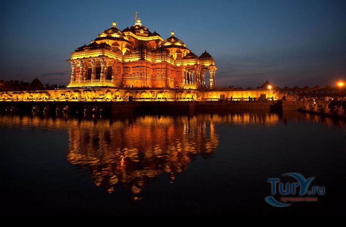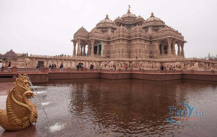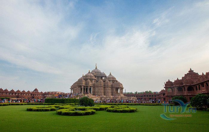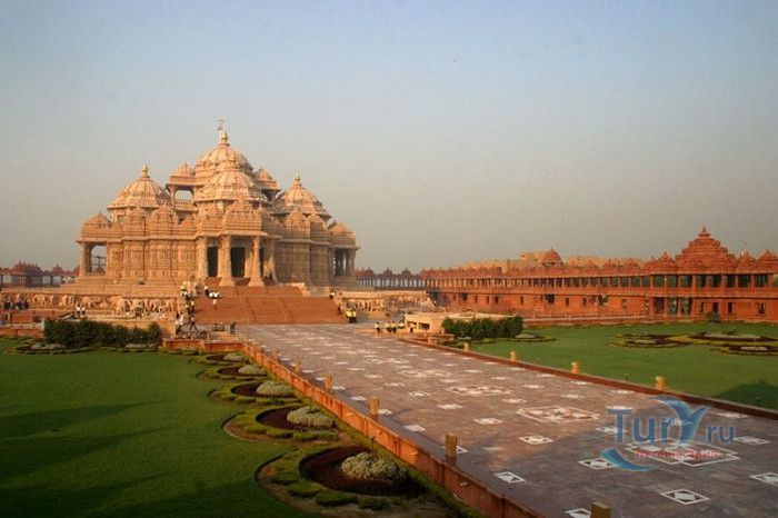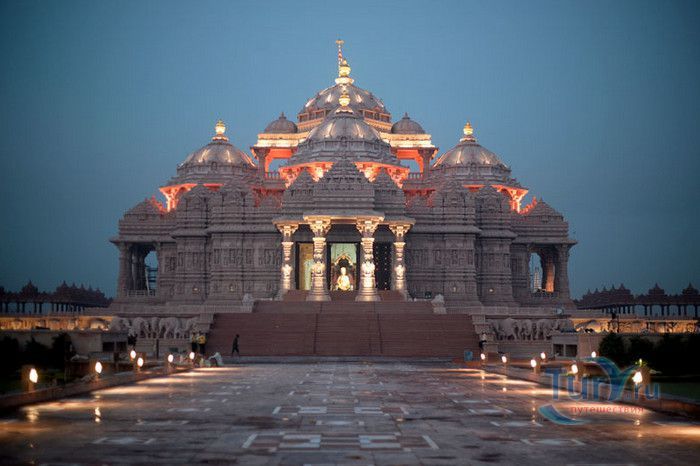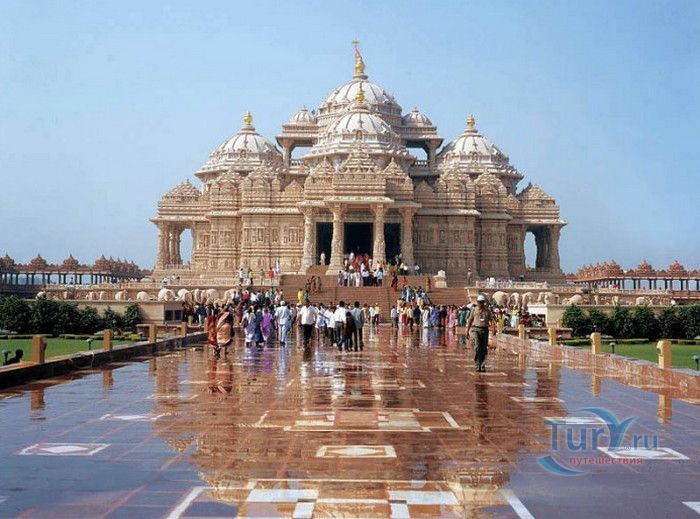Храмовый комплекс Сваминараян Акшардхам расположен в Индии, в Нью-Дели, на берегу реки Ямуна. Строительство храма велось с 2000 по 2005 год, официальное открытие состоялось 6 ноября 2005 года, сразу после которого Сваминараян Акшардхам был внесен в книгу Рекордов Гиннеса как самый большой индуистский храм в мире. На строительстве Обители Бога были задействованы около 11000 строителей и ремесленников из разных стран мира, стоимость проекта составила около полумиллиарда долларов США, все деньги были собраны за счёт добровольных пожертвований. Сваминараян Акшардхам расположен на территории площадью более 10 гектаров, помимо главного храма, посвящённого Бхагавану Сваминараяну (основоположнику религиозного течения Сваминараян в индуизме), в состав комплекса входят культурный центр с экспозиционными залами, большой парк с садами, искусственными озёрами, каналами и музыкальным фонтаном. "Сердцем" комплекса является главный храм Мандир Акшардхам, высота которого 42 метра, ширина - 94 метра, длина - 106 метров. Здание украшают девять куполов, 234 резных колонны и 20000 фигур (мурти), изображающих сюжеты из индийской мифологии. Отделка храма выполнена вручную, фасад построен из розового песчаника, в оформлении интерьера использовался белоснежный каррарский мрамор. Внутреннее помещение храма условно разделено на 9 тематических зон, посвящённых Бхагвану Сваминараяну и его последователям. В залах установлены их статуи, самая большая, высотой 3,5 метра - статуя Сваминараяна. В трёх выставочных залах посетители имеют возможность познакомиться с тысячелетней историей и традициями Индии, постулатами индуистской религии, посмотреть фильм о семилетнем паломничестве Сваминараяна. Экспозиции оформлены с применением самых современных технологий, световых и звуковых спецэффектов. Каждый день с наступлением темноты на территории Акшардхама посетители могут увидеть грандиозное лазерное шоу, гвоздём программы которого является светомузыкальный фонтан. Он состоит из восьми цветков лотоса, расположенных внутри огромной чаши, размер которой 91х91 метр. Вокруг фонтана построен амфитеатр с местами для зрителей. Посетители также могут прогуляться по большому парку, на территории которого созданы места для отдыха, есть кафе и сувенирные магазины.