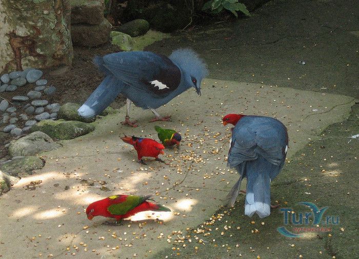 Парк Птиц Бали расположен в Индонезии, на острове Бали, в 10 км от города Денпасар. Территория парка площадью 2 гектара разделена на 7 тематических областей, в которых воссозданы природные места обитания птиц - "уроженцев" Индонезийского архипелага, Латинской Америки, Африки и Австралии. Всего в парке обитают более 1000 птиц, представленных 250 видами, в числе которых более 40 видов, находящихся под угрозой исчезновения. Посетители парка имеют уникальную возможность побродить по туманным джунглям Суматры и Папуа - областям парка, в которых обитают экзотические птицы золотой фазан, чёрный индийский ястреб, попугаи, венценосный голубь, птица-носорог, шлемоносный казуар, райские птицы и многие другие. Южную Америку в парке представляют редкие виды попугаев Ара, туканы, венесуэльский амазон, каравайка (птица семейства ибисовых), для которых в парке воссоздан участок мангровых зарослей с тенистыми водоёмами. Птицы из Южной Африки (африканский журавль, серый попугай, способный имитировать человеческий голос, смеющаяся кукабара, птица-носорог, фиолетовый турако) обитают в естественных для них природных условиях африканской саванны. Из представителей пернатых острова Ява в парке можно увидеть яванского хохлатого орла, яванского ястреба, зондскую сплюшку, усатого попугая, сороку-малиновку, яванского зяблика. Обитатели туманных облачных и тропических влажных лесов Борнео прекрасно чувствуют себя в специально построенных для них просторных вольерах. Гости парка могут увидеть гривистого голубя, фазана Бульвера, большого аргуса (одного из самых крупных представителей фазановых), а также представителя семейства крыланов - летучую лисицу. В парке обитает занесенный в Красную книгу, находящийся под угрозой исчезновения Балийский скворец. Редкая и необычайно красивая птица (белое оперение с чёрной окантовкой по краям крыльев и на хвосте, с синим ободком вокруг глаз) обитает только на острове Бали, в мире их насчитывается не больше 200-250 особей, некоторые из которых являются обитателями Парка птиц Бали. В рамках сохранения этого редкого вида в парке разработана программа по разведению Балийского скворца. В парке проводятся специальные мероприятия для детей и взрослых, посетители могут принять участие в кормлении птиц, сфотографироваться с экзотическими видами пернатых, поужинать в ресторане под открытым небом и приобрести на память сувениры в магазине парка.