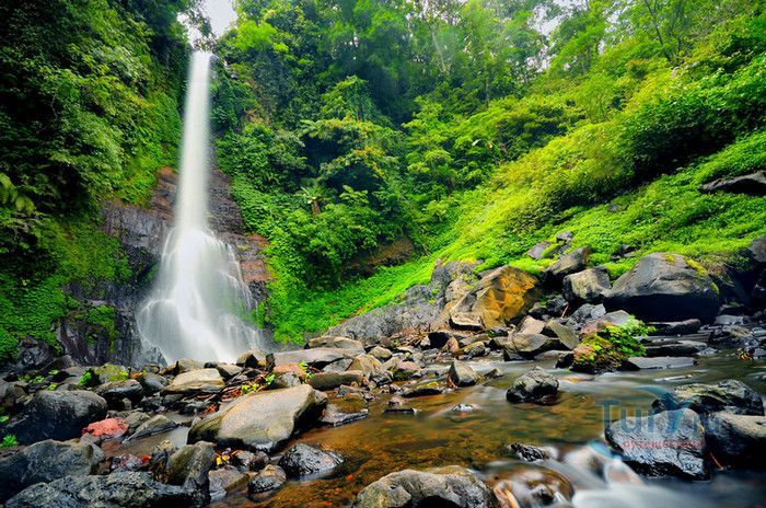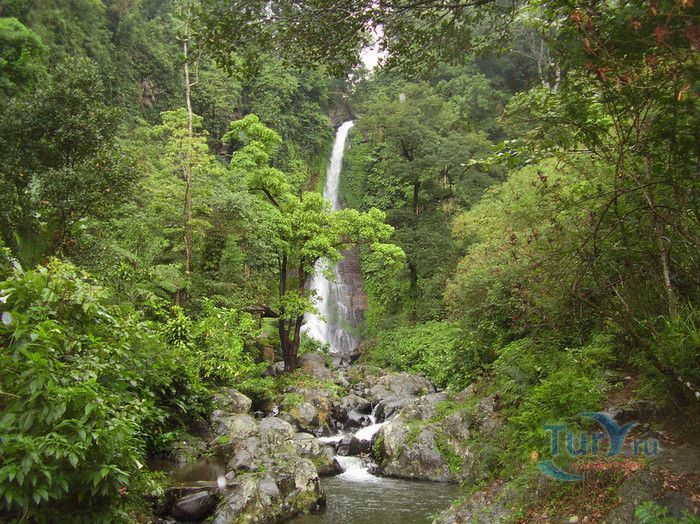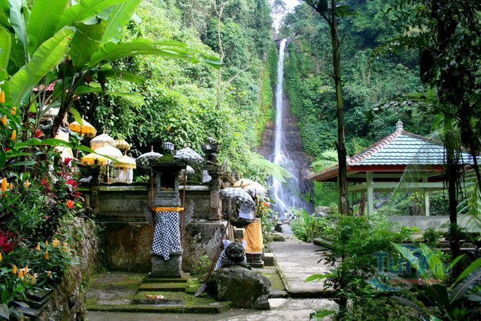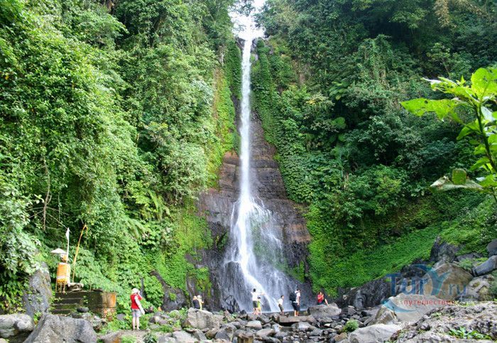Водопад Гит Гит, один из самых посещаемых водопадов Бали, расположен в северной части острова, в 11 км на юг от города Сингараджа. Гит Гит считается одним из самых красивых и полноводных водопадов острова, вода практически отвесно падает с 40-метровой высоты, образуя у подножия скалы небольшой, но глубокий бассейн, в котором можно искупаться. Вода здесь довольно холодная, рискнувшие "принять ванну" ощущают эффект ледяного душа. Водопад находится в 800 метрах от деревни Гит Гит, расположен посреди тропического леса, добраться до него можно только пешком. Путь пролегает вдоль реки, на берегу которой раскинулись рисовые поля, кофейные и ванильные плантации. Через реку перекинуто несколько мостков, в некоторых участках тропа имеет крутые подъёмы и спуски, но в целом путь не вызывает никаких сложностей, везде расставлены указатели. Шум водопада слышен уже издали, в воздухе ощущается прохлада и свежесть. Зрелище обрушивающейся с большой высоты водяной лавины, сверкающих на солнце брызг и буйства зелени привлекает в эти места тысячи туристов. Для посещения водопад Гит Гит открыт с 1975 года, предприимчивые балийцы прямо у подножия водопада организовали продажу сувениров, украшений и специй.
