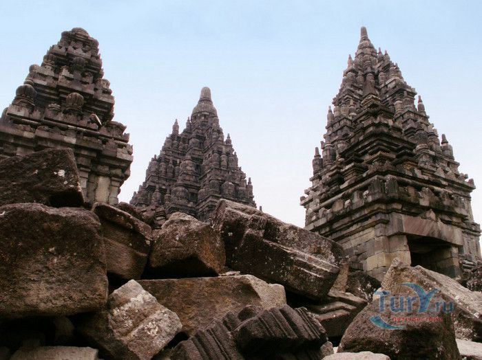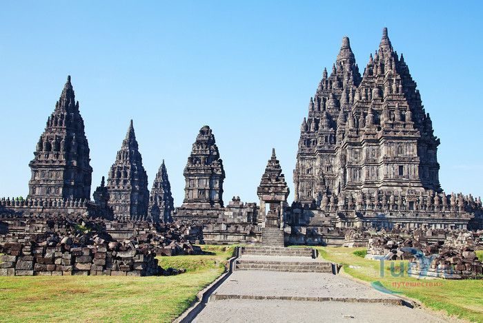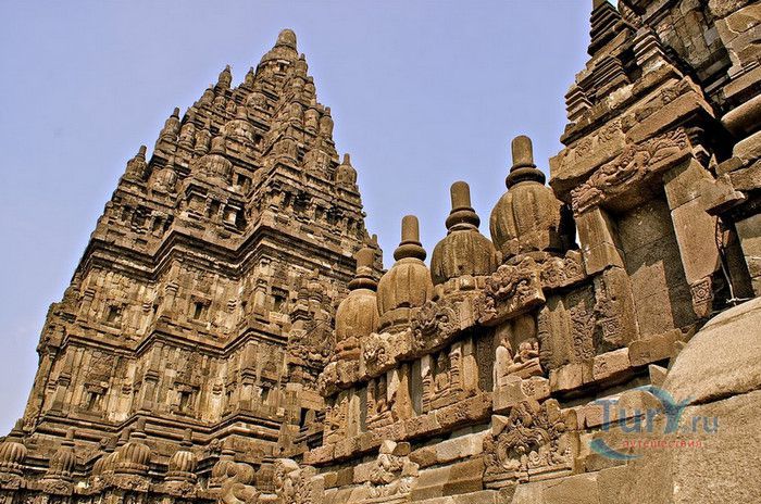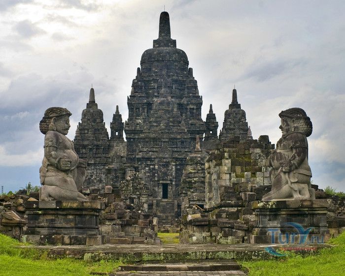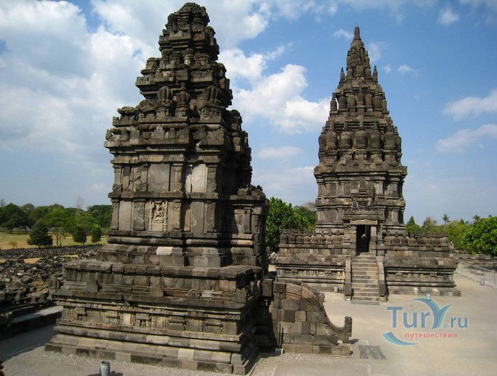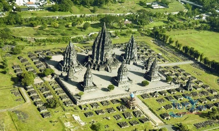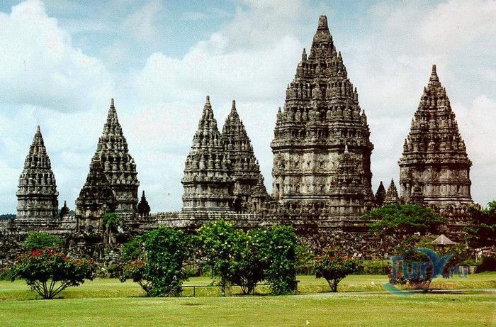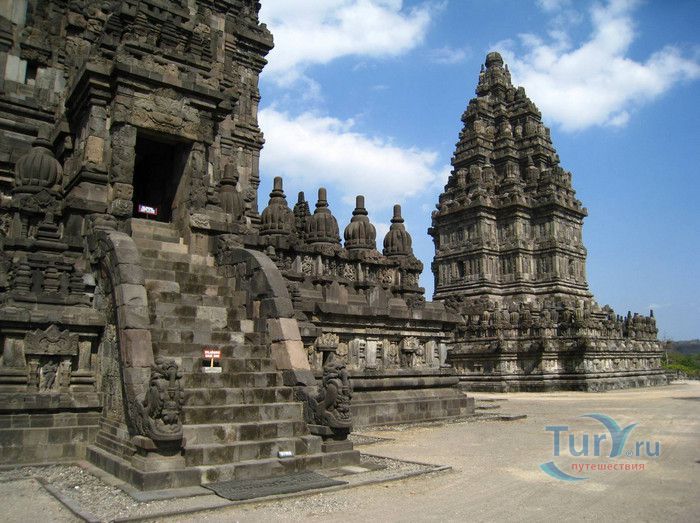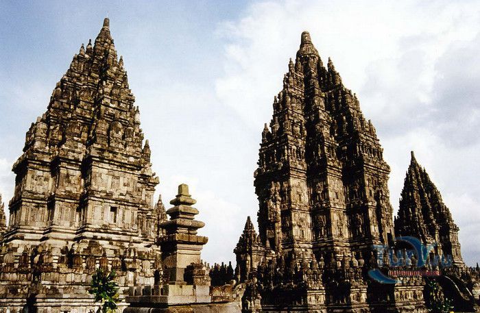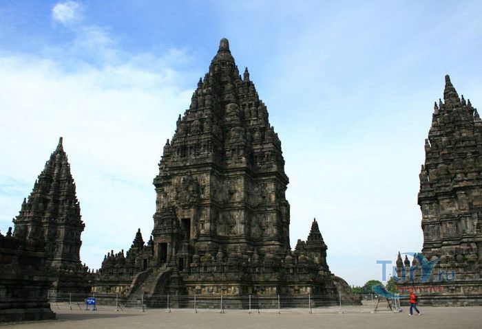 Храмовый комплекс Прамбанан расположен в Индонезии, в центральной части острова Ява, в 18 км от города Джокьякарта. Прамбанан ведёт свою летопись с VIII столетия, его основателем считают принца Ракаи Пикатана из династии Санджая. По замыслу принца, величием и роскошью индуистский Прамбанан должен был превзойти соседний буддийский храм Боробудур. Вплоть до X века Прамбанан достраивался и расширялся правителями Матарама (государства, существовавшего в VIII-X веках на территории Индонезии), в итоге комплекс стал насчитывать 240 больших и малых храмов. Прамбанан имел статус королевского храма, в нём проходили религиозные церемонии и жертвоприношения. В начале Х столетия центр Матарама был перенесен в восточную Яву, и Прамбанан оказался покинутым. В XVI веке из-за сильного землетрясения и извержения вулкана Мерапи большая часть комплекса была разрушена, руины некогда величественного сооружения постепенно поглотили джунгли. Лишь в 1930 году в Прамбанане начались масштабные реставрационные работы, которые продолжаются и по сей день. Религиозный комплекс имеет три зоны. Внешняя зона представляет собой открытое пространство, которое было огорожено массивными каменными стенами, ныне разрушенными. Археологи предполагают, что здесь в давние времена был большой сад для релаксации. Средняя зона состоит из четырёх ярусов и разделена четырьмя невысокими стенами. В этой зоне располагались 224 святилища, так называемые Candi Perwara (Хранители храмов), большинство из них лежат в руинах. Внутренняя зона содержит 16 храмов - 8 главных и столько же второстепенных. В центре комплекса расположены главные святыни Прамбанана - храм бога Шивы, к северу от него - храм Брахмы, на юге - храм бога Вишну. Эту троицу называют Лара Джонгранг, что означает "Стройная дева". Стены храмов украшены барельефами с изображением сцен из древних эпосов Рамаяна и Крешнаяна. Рядом с тремя основными храмами находятся святилища, посвящённые животным верховных богов - орлу Гаруде, на котором летает Вишну, быку Нанди - перевозчику Шивы и лебедю Ангсу, животному Брахмы. Прамбанан признан одним из самых красивых индуистских храмов в мире, входит в перечень наиболее посещаемых достопримечательностей Индонезии. В 1991 году археологический памятник Прамбанан внесен в список Всемирного наследия ЮНЕСКО.