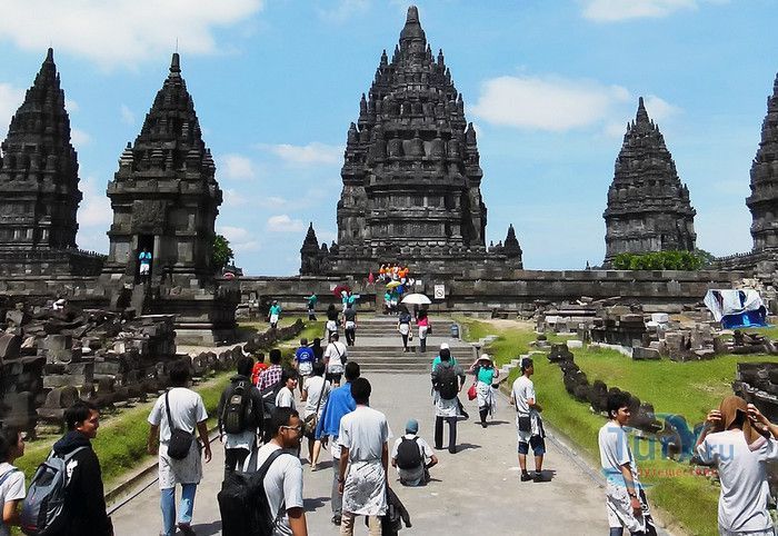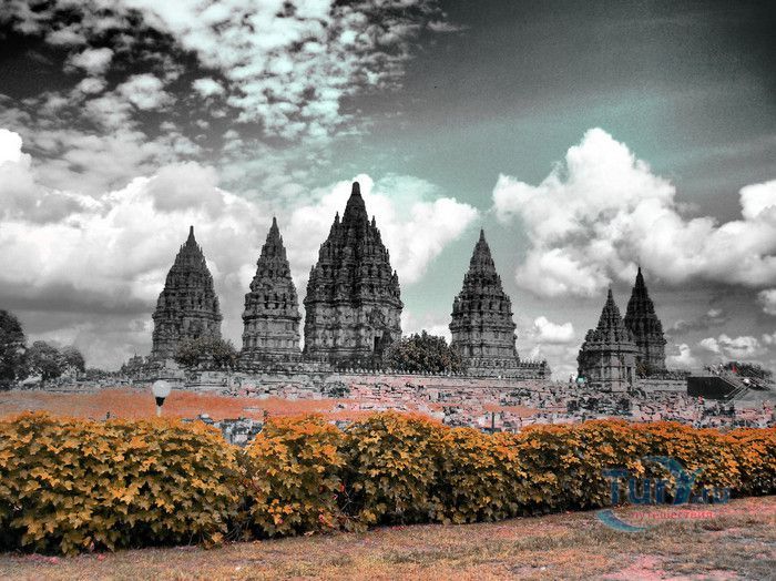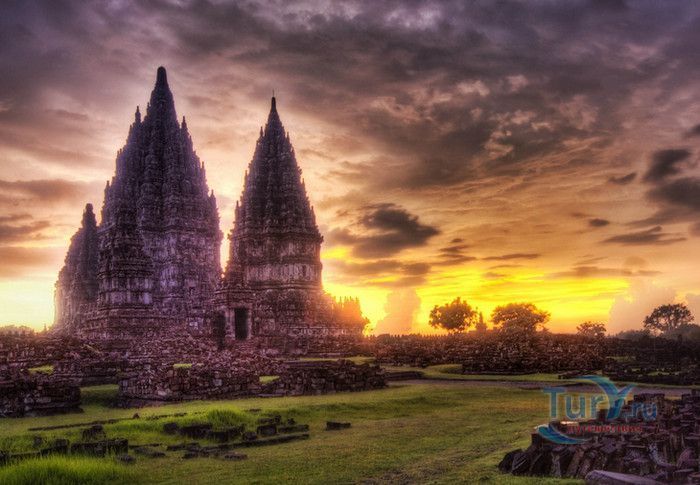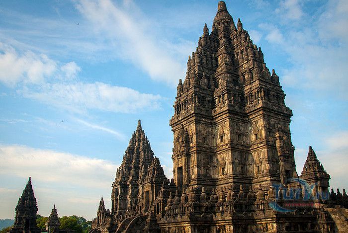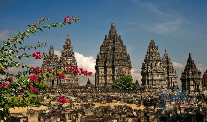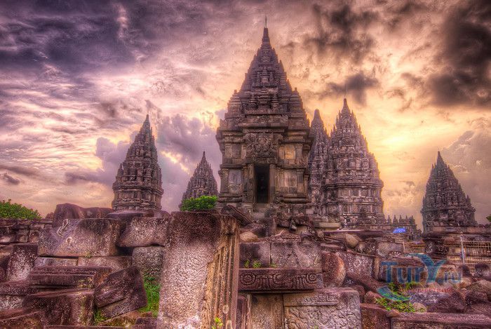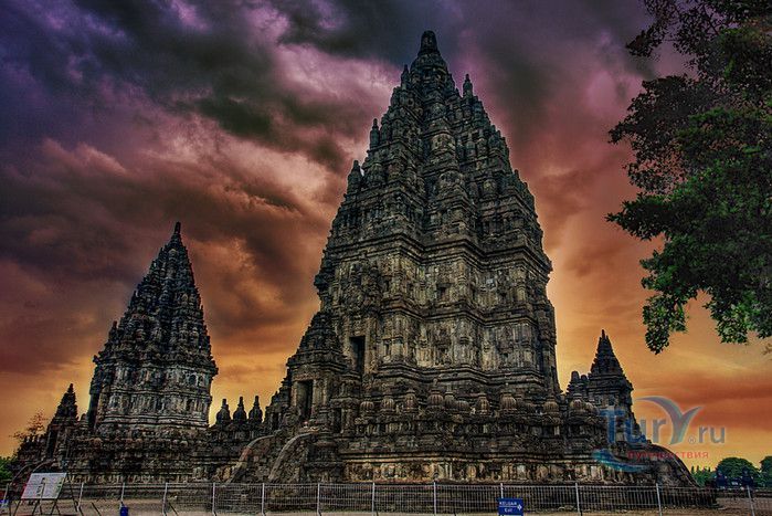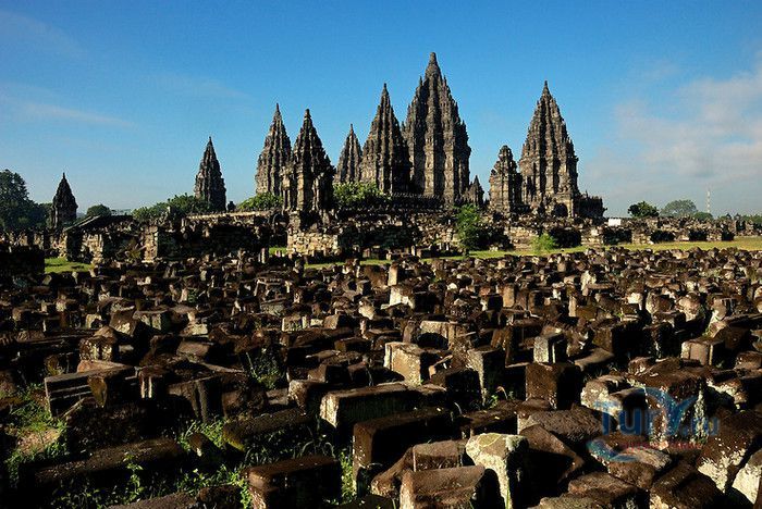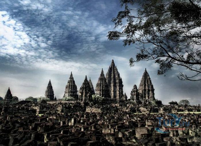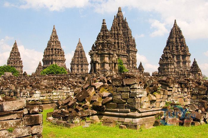 Храмовый комплекс Прамбанан расположен в Индонезии, в центральной части острова Ява, в 18 км от города Джокьякарта. Прамбанан ведёт свою летопись с VIII столетия, его основателем считают принца Ракаи Пикатана из династии Санджая. По замыслу принца, величием и роскошью индуистский Прамбанан должен был превзойти соседний буддийский храм Боробудур. Вплоть до X века Прамбанан достраивался и расширялся правителями Матарама (государства, существовавшего в VIII-X веках на территории Индонезии), в итоге комплекс стал насчитывать 240 больших и малых храмов. Прамбанан имел статус королевского храма, в нём проходили религиозные церемонии и жертвоприношения. В начале Х столетия центр Матарама был перенесен в восточную Яву, и Прамбанан оказался покинутым. В XVI веке из-за сильного землетрясения и извержения вулкана Мерапи большая часть комплекса была разрушена, руины некогда величественного сооружения постепенно поглотили джунгли. Лишь в 1930 году в Прамбанане начались масштабные реставрационные работы, которые продолжаются и по сей день. Религиозный комплекс имеет три зоны. Внешняя зона представляет собой открытое пространство, которое было огорожено массивными каменными стенами, ныне разрушенными. Археологи предполагают, что здесь в давние времена был большой сад для релаксации. Средняя зона состоит из четырёх ярусов и разделена четырьмя невысокими стенами. В этой зоне располагались 224 святилища, так называемые Candi Perwara (Хранители храмов), большинство из них лежат в руинах. Внутренняя зона содержит 16 храмов - 8 главных и столько же второстепенных. В центре комплекса расположены главные святыни Прамбанана - храм бога Шивы, к северу от него - храм Брахмы, на юге - храм бога Вишну. Эту троицу называют Лара Джонгранг, что означает "Стройная дева". Стены храмов украшены барельефами с изображением сцен из древних эпосов Рамаяна и Крешнаяна. Рядом с тремя основными храмами находятся святилища, посвящённые животным верховных богов - орлу Гаруде, на котором летает Вишну, быку Нанди - перевозчику Шивы и лебедю Ангсу, животному Брахмы. Прамбанан признан одним из самых красивых индуистских храмов в мире, входит в перечень наиболее посещаемых достопримечательностей Индонезии. В 1991 году археологический памятник Прамбанан внесен в список Всемирного наследия ЮНЕСКО.
