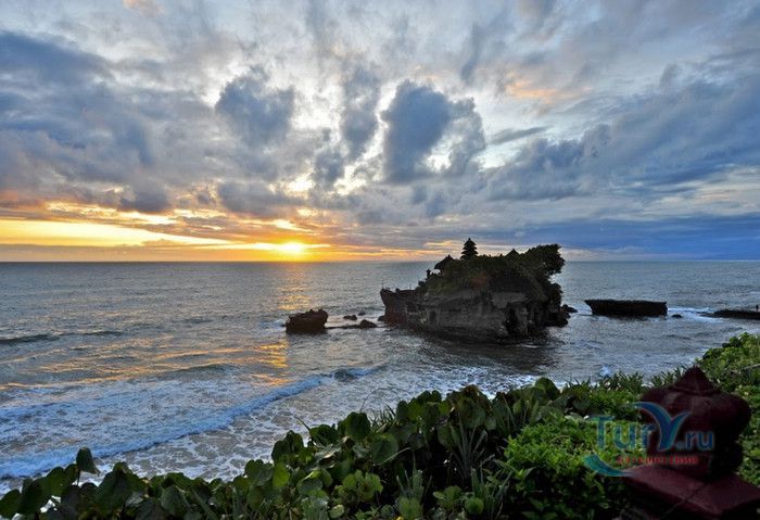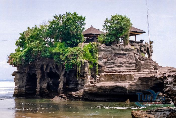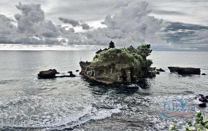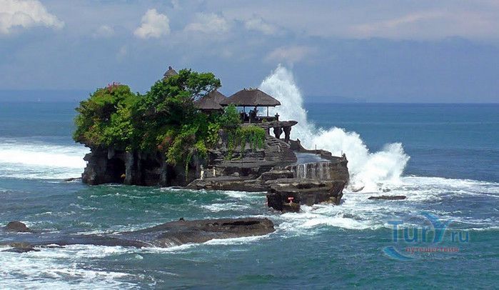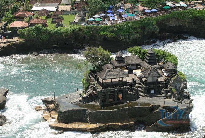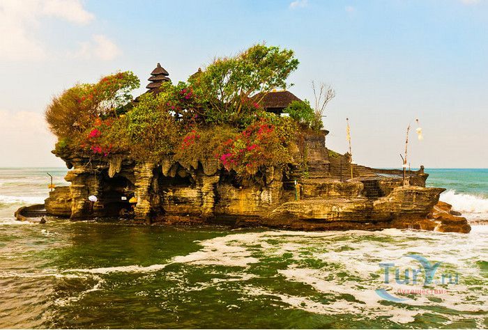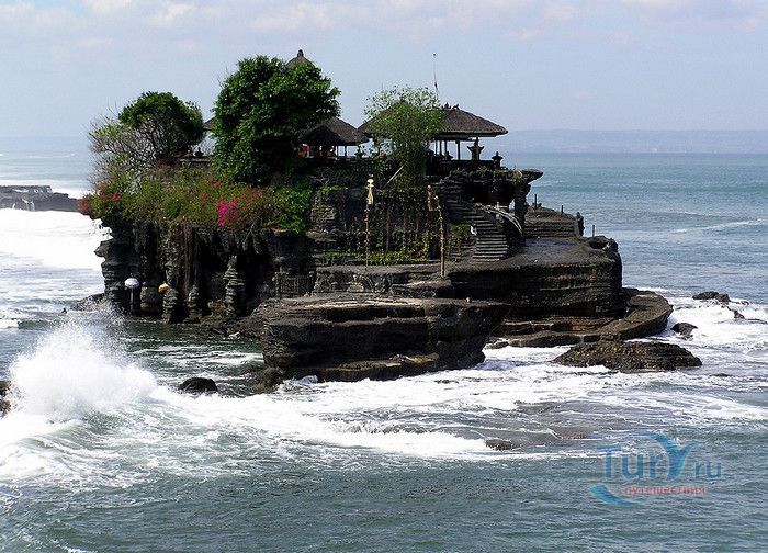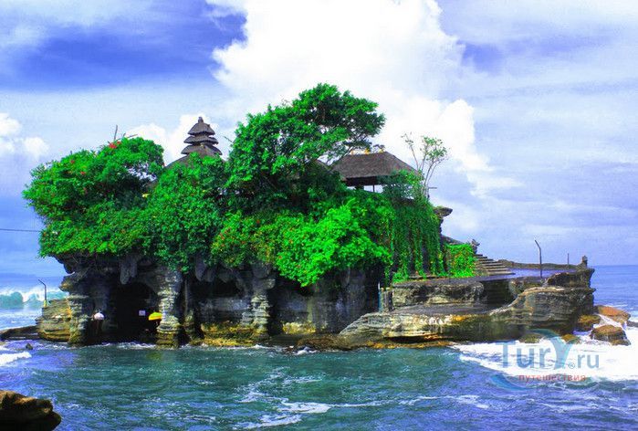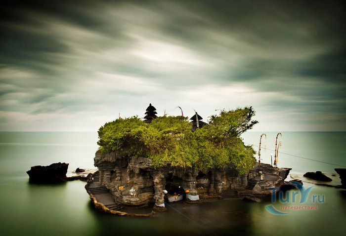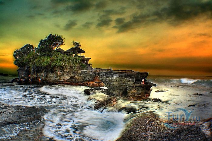 Храм Танах Лот расположен в Индонезии, на юго-западе острова Бали, в 20 км от города Денпасар. Храм Танах Лот - действующий индуистский храм и одна из самых известных достопримечательностей острова Бали, которую ежегодно посещают около миллиона человек. Храм построен на скале, расположенной в нескольких метрах от берега, с сушей утёс связан узким перешейком, пройти по которому можно только во время отлива. Согласно легенде, в XVI веке храм на скале основал индуистский брахман Данг Хьянг Нирартх. Проповедника индуизма привёл к утёсу божественный свет, исходивший от бьющего из скалы родника. Эту скалу, по форме напоминающую птицу, Данг Хьянг Нирартх избрал местом для своих медитаций и проповедей. Достаточно быстро у него появилось большое количество учеников, что вызвало недовольство у местного священника, проповедовавшего монетеизм. Не желая уступать глашатаю новой веры, он попытался заставить Данг Хьянг Нирартха покинуть селение. Предание гласит, что силой своей веры Данг Хьянг оторвал утёс от берега и перенёс его в море. На вершине скалы был построен храм, названный Танах Лот, что означает "земля в море", в пещерах у подножия утёса проповедник поселил ядовитых морских змей, которые должны были охранять храм от злых духов и непрошенных гостей. Местные жители верят, что храм Танах Лот оберегает остров Бали от голода и эпидемий, место считается священным. Только верующим разрешено подниматься по ступеням, вырезанным в скале, и входить в храм, туристам позволено лишь заглянуть в пещеры. В главном здании поклоняются Богу моря, в здании, расположенном в северной части, - основателю храма. На закате, когда солнце "садится" в море, силуэт храма Танах Лот чётко вырисовывается на фоне багряного неба, фотографии с этим видом являются визитной карточкой острова Бали.