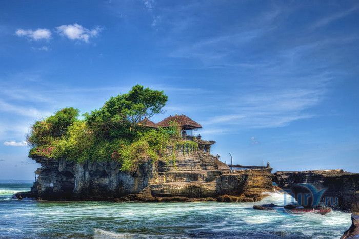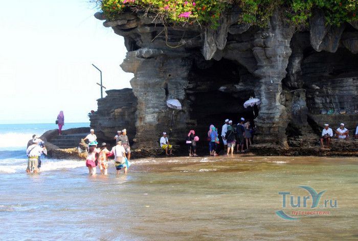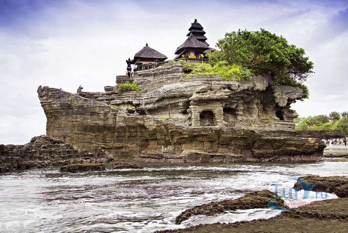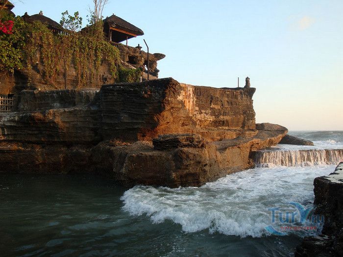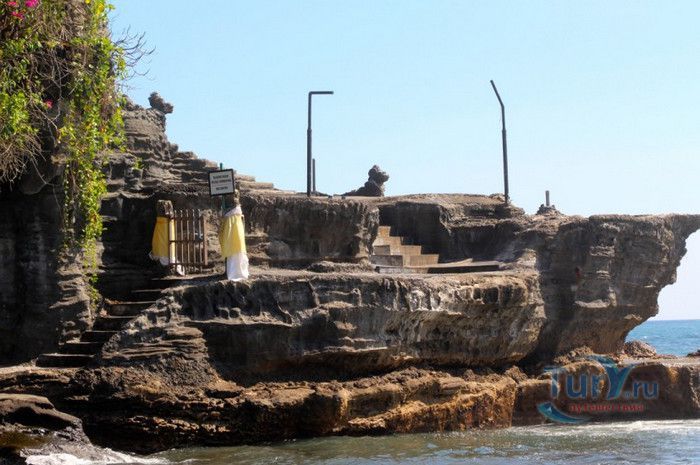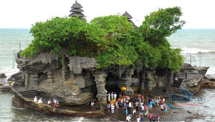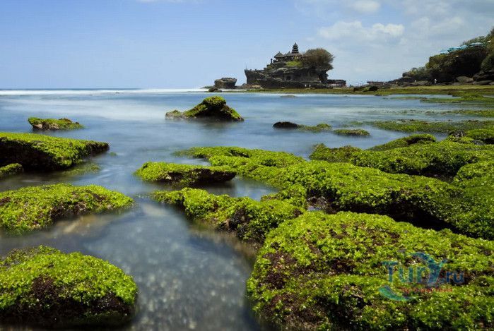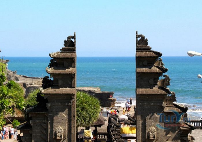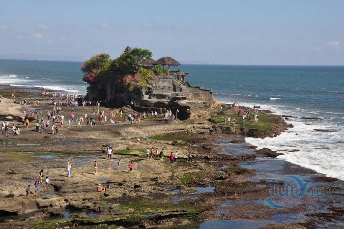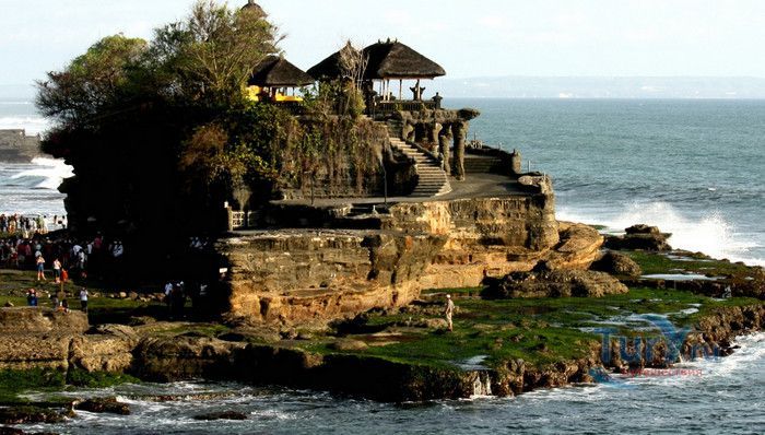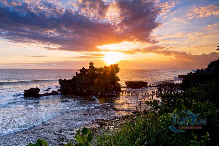 Храм Танах Лот расположен в Индонезии, на юго-западе острова Бали, в 20 км от города Денпасар. Храм Танах Лот - действующий индуистский храм и одна из самых известных достопримечательностей острова Бали, которую ежегодно посещают около миллиона человек. Храм построен на скале, расположенной в нескольких метрах от берега, с сушей утёс связан узким перешейком, пройти по которому можно только во время отлива. Согласно легенде, в XVI веке храм на скале основал индуистский брахман Данг Хьянг Нирартх. Проповедника индуизма привёл к утёсу божественный свет, исходивший от бьющего из скалы родника. Эту скалу, по форме напоминающую птицу, Данг Хьянг Нирартх избрал местом для своих медитаций и проповедей. Достаточно быстро у него появилось большое количество учеников, что вызвало недовольство у местного священника, проповедовавшего монетеизм. Не желая уступать глашатаю новой веры, он попытался заставить Данг Хьянг Нирартха покинуть селение. Предание гласит, что силой своей веры Данг Хьянг оторвал утёс от берега и перенёс его в море. На вершине скалы был построен храм, названный Танах Лот, что означает "земля в море", в пещерах у подножия утёса проповедник поселил ядовитых морских змей, которые должны были охранять храм от злых духов и непрошенных гостей. Местные жители верят, что храм Танах Лот оберегает остров Бали от голода и эпидемий, место считается священным. Только верующим разрешено подниматься по ступеням, вырезанным в скале, и входить в храм, туристам позволено лишь заглянуть в пещеры. В главном здании поклоняются Богу моря, в здании, расположенном в северной части, - основателю храма. На закате, когда солнце "садится" в море, силуэт храма Танах Лот чётко вырисовывается на фоне багряного неба, фотографии с этим видом являются визитной карточкой острова Бали.
