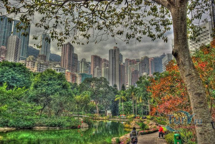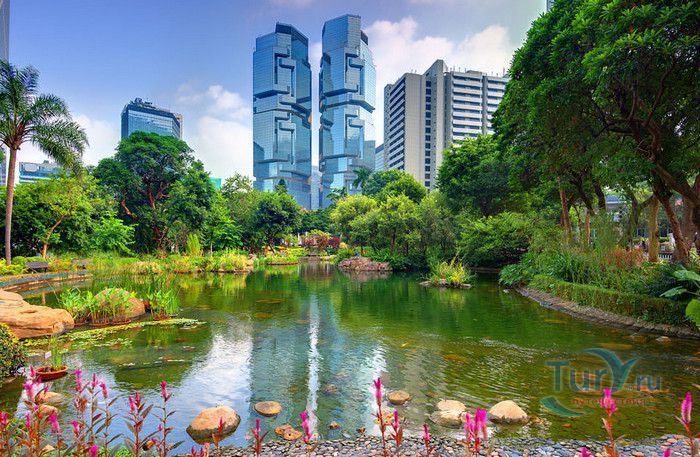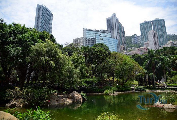 Городской общественный Парк Гонконг расположен в центральном районе острова Гонконг, открыт в 1991 году, занимает территорию площадью 8 гектаров. До 1979 года на этом месте располагались казармы английского военного гарнизона Виктория, пока правительством Гонконга не было принято решение о строительстве на части территории государственных и коммерческих зданий, а на остальной - большого городского парка. Создание "зелёного оазиса" обошлось в 398 миллионов гонконгских долларов, в проекте парка гармонично объединены природный ландшафт и современный дизайн. С одной стороны парк окружён небоскрёбами, а с другой его стороны открывается красивый вид на пик Виктория, высочайшую точку острова Гонконг. В центре парка создано искусственное озеро с водопадом, построен большой вольер, в котором обитают более 80 видов экзотических птиц. Для того, чтобы посетители могли наблюдать за пернатыми вблизи, в вольере оборудованы подвесные дорожки на уровне крон деревьев. На территории парка есть оранжерея, Тай Чи сад, многоуровневая детская игровая площадка, 30-метровая обзорная башня, фонтаны, тенистые аллеи. В парке есть и Олимпийская площадь - открытый амфитеатр в древнегреческом стиле, способный вместить до 880 зрителей. В театре проходят выставки, театральные представления, концерты и другие развлекательные мероприятия. Любители активного отдыха посещают современный Спортивный центр, в котором есть корты, баскетбольные и волейбольные площадки, столы для игры в настольный теннис, тренажёрный зал. Сквош-центр парка является крупнейшим в Гонконге, в нём проводятся чемпионаты страны и международные соревнования. На территории парка расположены консерватория, Центр визуальных искусств, Музей чайной посуды, кафе и рестораны. В 1998 году парк Гонконг получил награду от Американского института архитекторов за лучший дизайн городского парка. Ежегодно парк посещают около миллиона человек, он является одним из любимых мест отдыха горожан и гостей Гонконга.