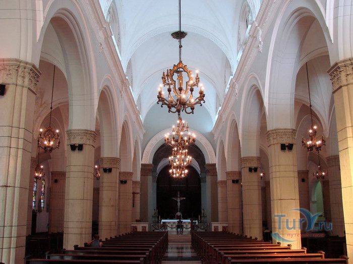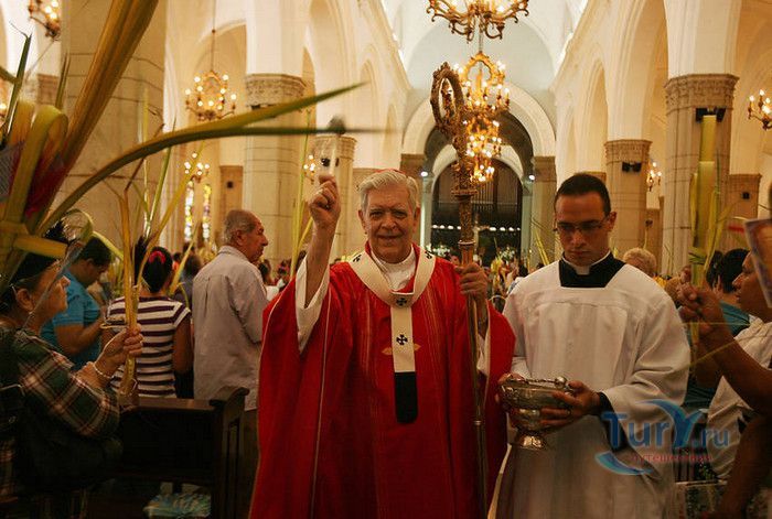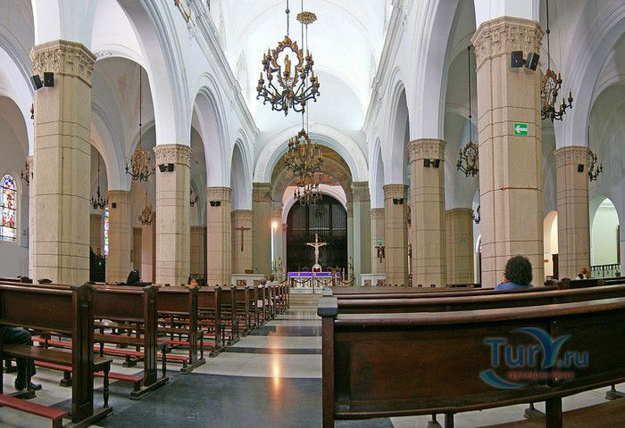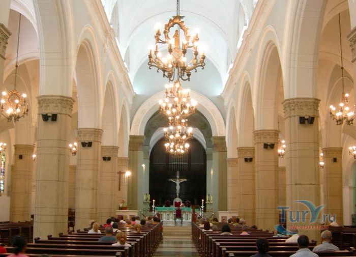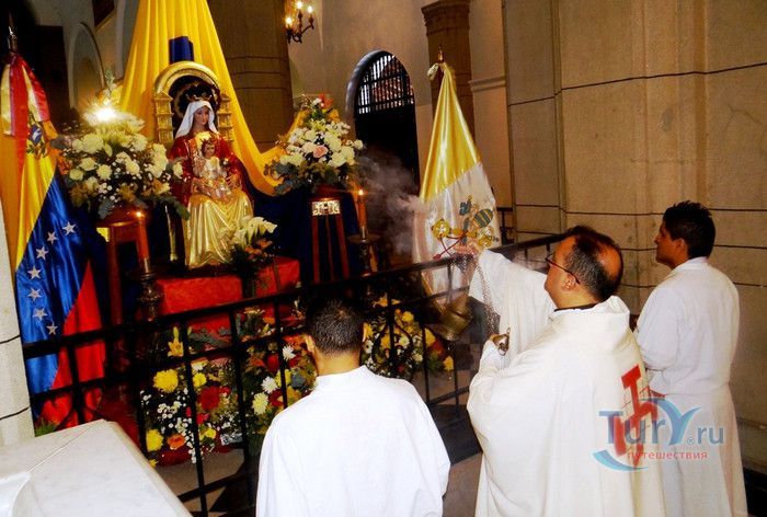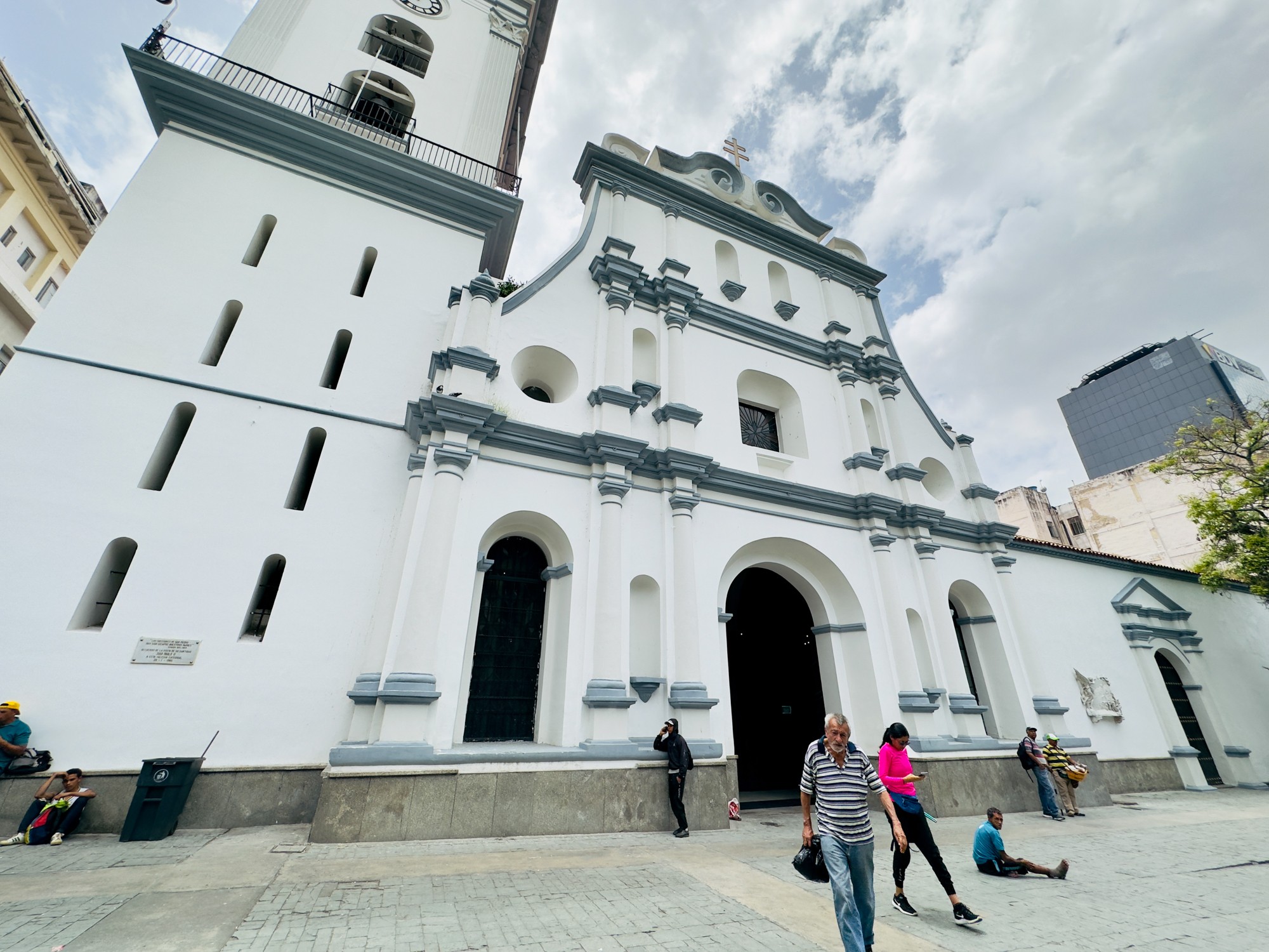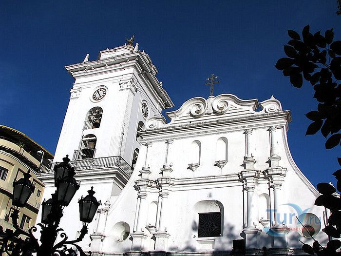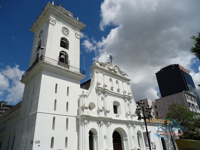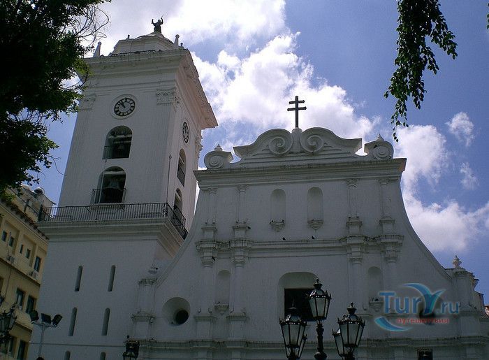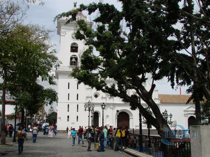 Кафедральный Собор Каракаса, главный католический храм города и резиденция архиепископа Каракаса, расположен в центре столицы Венесуэлы, на площади имени Симона Боливара. Строительство нынешнего собора велось в 1665-1674 годах под руководством архитектора Хуана-де-Медина. Ранее на этом месте стояла церковь Святого Иакова, разрушенная во время землетрясения 1641 года. В последующие годы собор несколько раз перестраивался - в 1711 году по проекту архитектора Франсиско Андреса Менезеса был построен новый фасад в неоклассическом стиле с пилястрами и декоративными карнизами, ещё через 12 лет храм был расширен и стал пятинефным. Землетрясение 1766 года нанесло значительный ущерб зданию, была сильно повреждена колокольня, а землетрясение 1812 года привело к практически полному разрушению храма - своды собора рухнули, похоронив под руинами нескольких прихожан. В ходе реставрации была уменьшена башня собора, в 1866 году наверху главного фасада надстроен фронтон. Ремонт интерьеров был окончен в 1867 году. В плане храм имеет прямоугольную форму, пять нефов и восемь боковых часовен. Внутреннее пространство разделено колоннами, которые поддерживают арки свода, окна украшены витражами, алтарь и запрестольный образ находятся в святилище, в конце центрального нефа. В часовне Богоматери Пилар похоронены почти все архиепископы Каракаса, здесь же находится картина Тайная Вечеря кисти венесуэльского живописца Артуро Мичелена, автор умер, не успев закончить работу. В часовне Святой Троицы покоятся родители и жена национального героя Венесуэлы Симона Боливара. В Кафедральном Соборе Каракаса состоялось крещение самого Боливара, здесь же с 1842 по 1876 годы покоился его прах, пока не был перезахоронен в Национальном Пантеоне. Кафедральный собор Каракаса в 1957 году был объявлен национальным памятником, является одной из главных исторических и архитектурных достопримечательностей города.