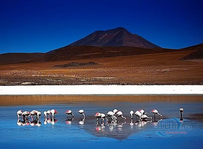 Если Вам когда-нибудь посчастливится увидеть красные, зеленые, желтые и голубые лагуны национального парка Эдуарде Авароа, Вы перестанете верить в то, что вода прозрачная. Эти капризные лагуны меняют свой цвет в зависимости от времени дня и освещения. Красная лагуна, также известная под названием «Гнездо Анд», приютила более 30000 фламинго разных видов. Вода в этой лагуне красноватая из-за почв осадочных пород. Здесь можно увидеть таких птиц как париначика или сока корнуда. На островах водятся ламы, викуньи, вискачи. Зеленая Лагуна обязана таким цветом воды магнию, входящему в состав почв ее дна. Скалы, гейзеры, вулканические впадины - все эти необычные ландшафты привлекают путешественников в этот парк.