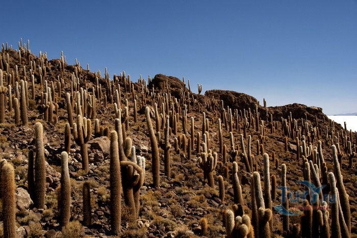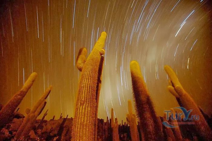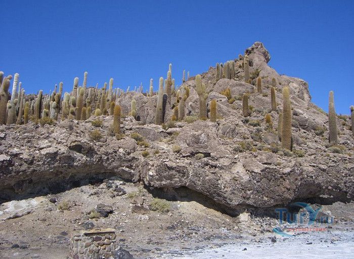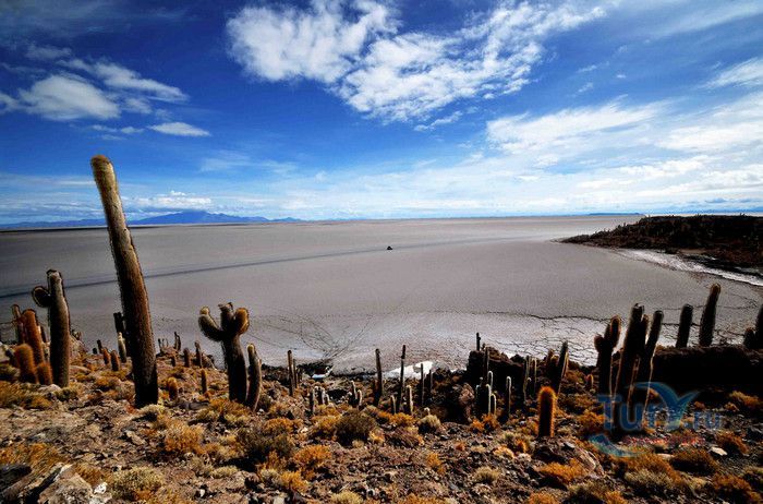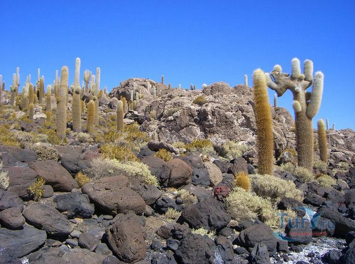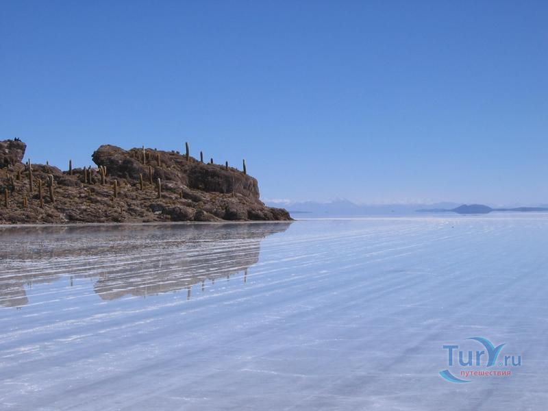 Остров Рыбы - не совсем остров, здесь нет воды и рыба не водится. Это своеобразный каменистый оазис, расположенный в северной части соляной пустыни Салар-де-Уюни, в Боливии. Название острову дали индейцы аймара из-за его формы. В сезон дождей, когда солончак, окружающий со всех сторон остров, покрывается слоем воды, отражение острова в соляном озере напоминает своими очертаниями гигантскую рыбу. А стремительно несущиеся по небу облака, отражаясь в водном зеркале, создают визуальный эффект волн на море. На каменистой почве острова растёт "кактусовый лес", гигантские растения могут вырастать до 10 метров в высоту. На острове живут несколько семей, из живности - только ламы, которых разводят местные жители. Туристическая инфраструктура не развита, добраться до острова достаточно сложно, в случае предполагаемой ночёвки, необходимо заранее согласовать вопрос с туроператором. Остров Рыбы не так известен, как расположенный в 20 км от него остров Инкауаси, но с каждым годом посмотреть на это чудо природы приезжают всё больше туристов.