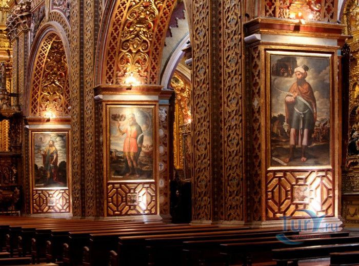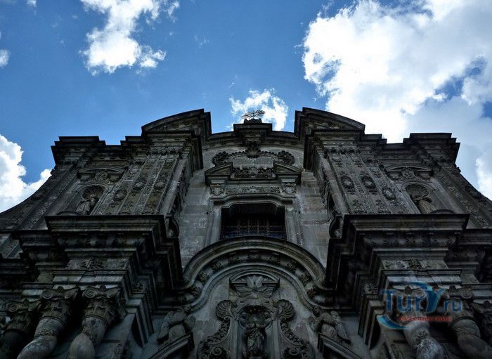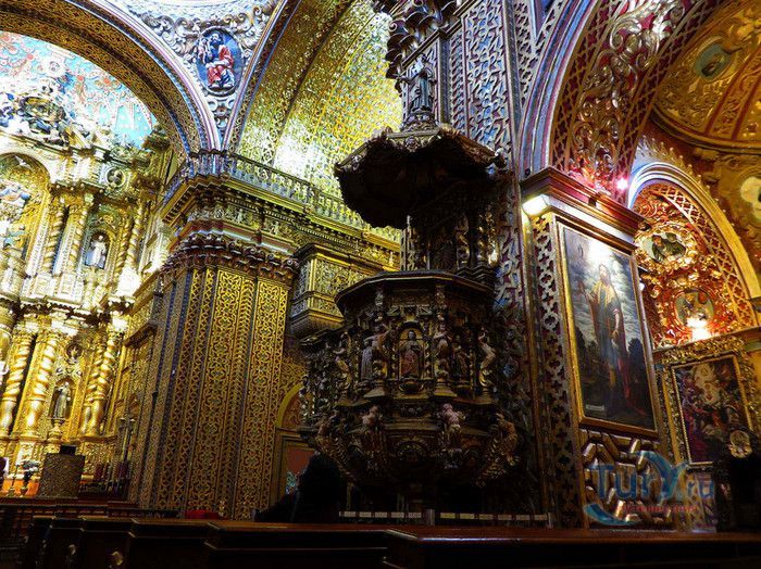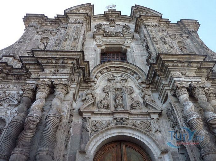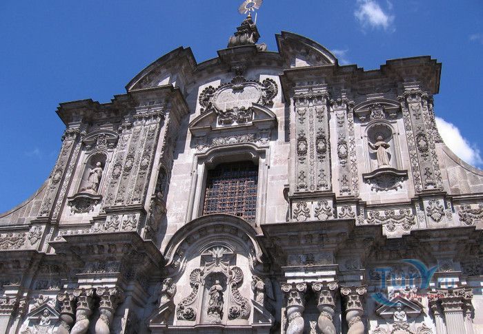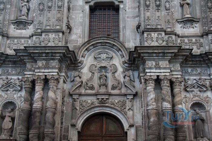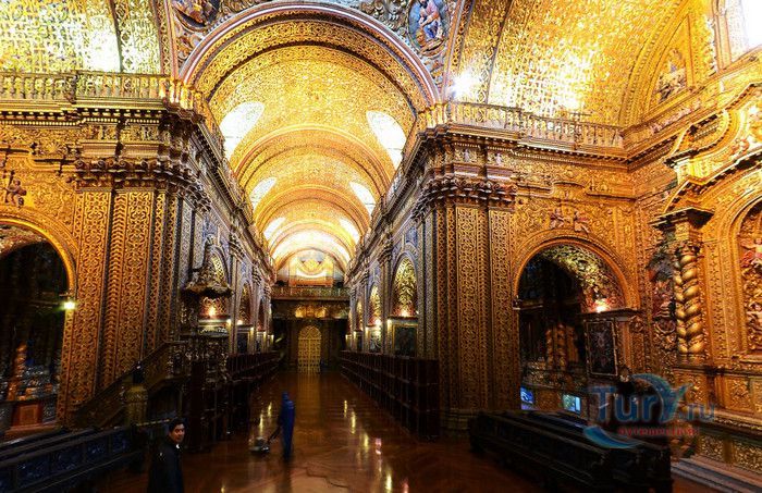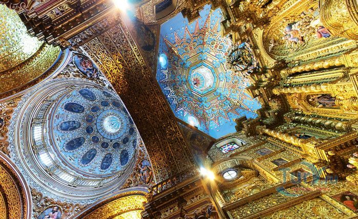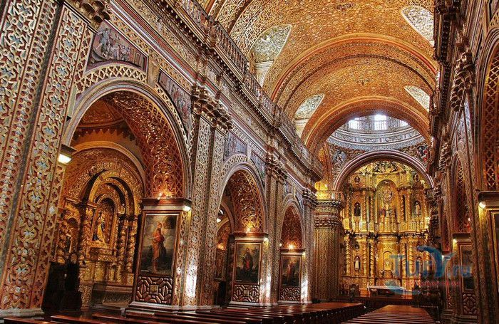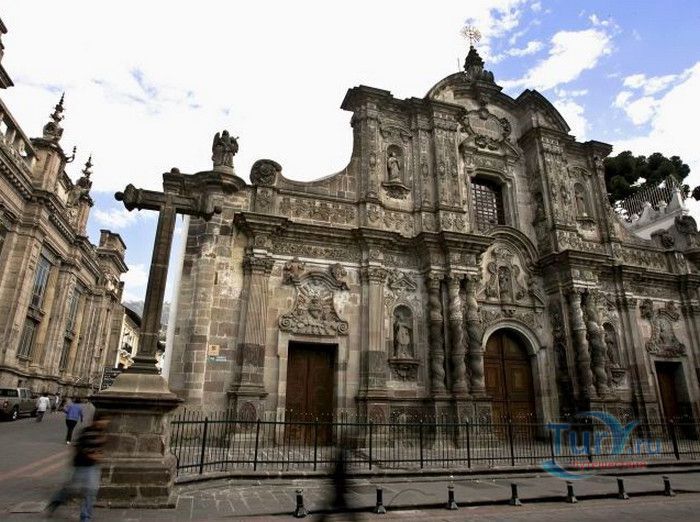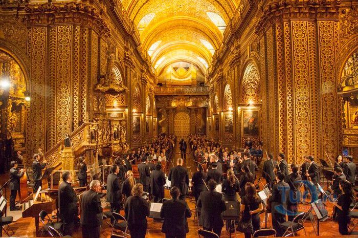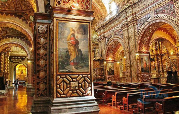По пятам за военным покорением царства инков шло его религиозное порабощение. Католическая церковь сокрушала древние верования инков и силой обращала их в христианство. Это миссионерство осуществлялось различными церковными орденами - францисканцами, доминиканцами, августинцами и не в последнюю очередь иезуитами. Первые церкви размещались в простых, незатейливых зданиях, а для больших общин богослужение проводилось прямо под открытым небом. Но с середины XVI века строительство церквей приобретает солидный размах, индейцы под надзором священников возводят все более величественные храмы. Церкви строились, как правило, в испанском стиле - эти массивные здания с мощными стенами выглядят как неприступные бастионы веры, долженствующие уберечь хранящиеся в них святыни от осквернения индейцами-язычниками. Примерно в те же времена началась беспощадная эксплуатация месторождений золота и серебра (в 1545 году в Боливии была открыта гора Потоси, вся пронизанная серебряными жилами), и церкви во славу Божию стали все более пышно украшаться этими металлами. Построенная в стиле барокко церковь Ла Компания (La Campania - Церковь Христова братства) считается богатейшим христианским храмом всей Латинской Америки. Возведение её было начато в 1605 году, но завершено лишь в XVIII столетии. Пышный фасад, увенчанный зелеными и золотыми куполами, украшен статуями и витыми колоннами. Интерьер церкви выдержан в пурпурных и золотых тонах. Утверждают, что на убранство алтарей, стен и хоров ушло 6,4 тонны золота. Главный алтарь, расположенный под очень красивым купольным сводом, а также десять алтарей в боковых нишах щедро украшены листовым золотом. Кафедра и исповедальни поражают изысканной резьбой по дереву. Каждый свободный сантиметр стен и потолка расписан яркими, сияющими красками. Оформление интерьера иногда напоминает образцы мавританского стиля. В целом церковь производит впечатление галереи художественной школы Кито, которая и по сей день вызывает восхищение. Росписи сводов церкви Ла Компания по праву считаются ответом художественной школы Кито на знаменитую Сикстинскую капеллу. Богоматерь Скорбящая, главная икона церкви, богато украшенная золотом и изумрудами, постоянно хранится в сейфе Центрального банка и демонстрируется миру лишь по случаю особо важных церковных церемоний. В церкви покоятся бренные останки Санта-Марианиты де Хесус, святой-покровительницы города Кито. Она была родом из испанской семьи, но принимала близко к сердцу беды и страдания индейского населения, подчинив свою жизнь религиозному подвигу сурового жертвенного покаяния. Когда в городе разразилась эпидемия чумы, она предложила Господу принять её жизнь во искупление грехов других людей, и вскоре, в 1645 году, действительно умерла. В 1950 году она причислена к лику святых. Францисканцы построили в Кито множество храмов и монастырей. Благодаря им город считается столицей католической веры во всей Латинской Америке.
