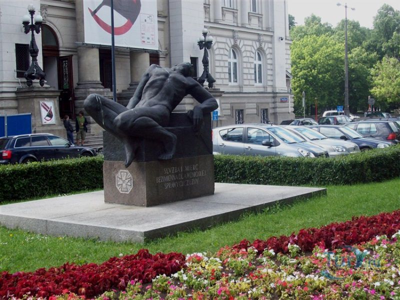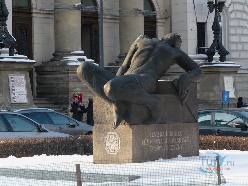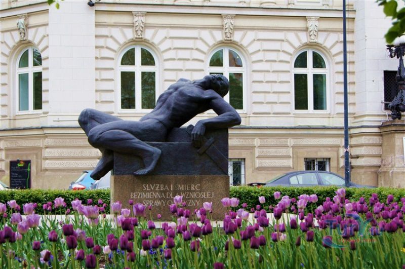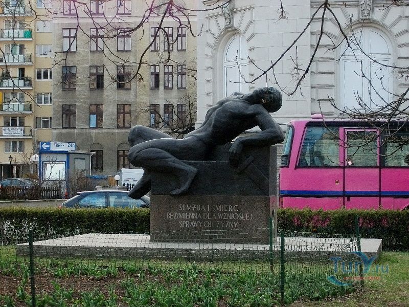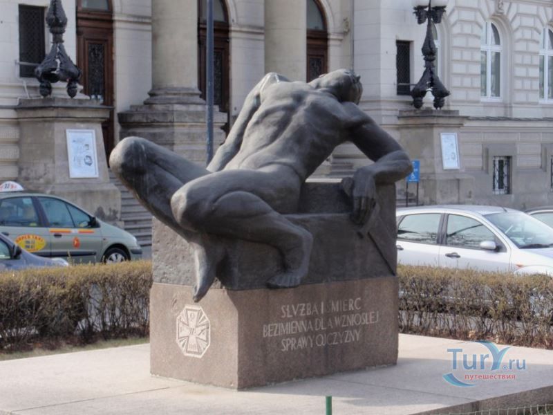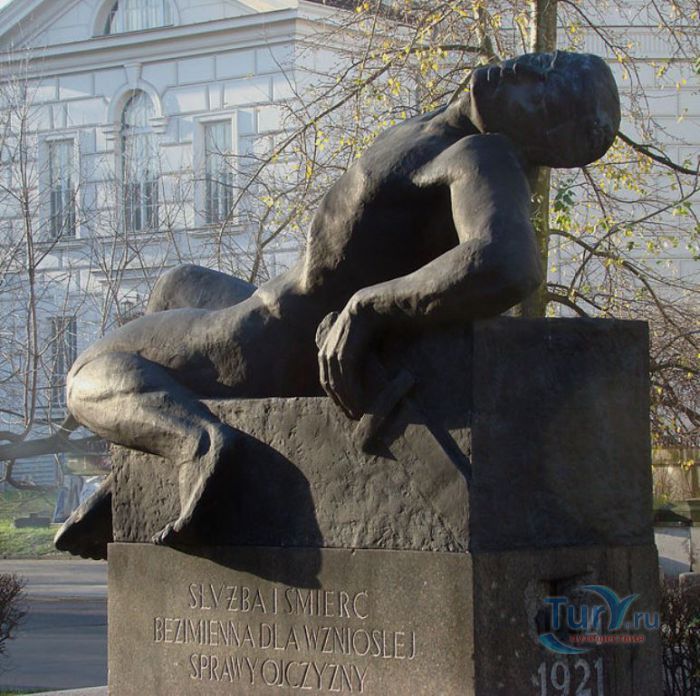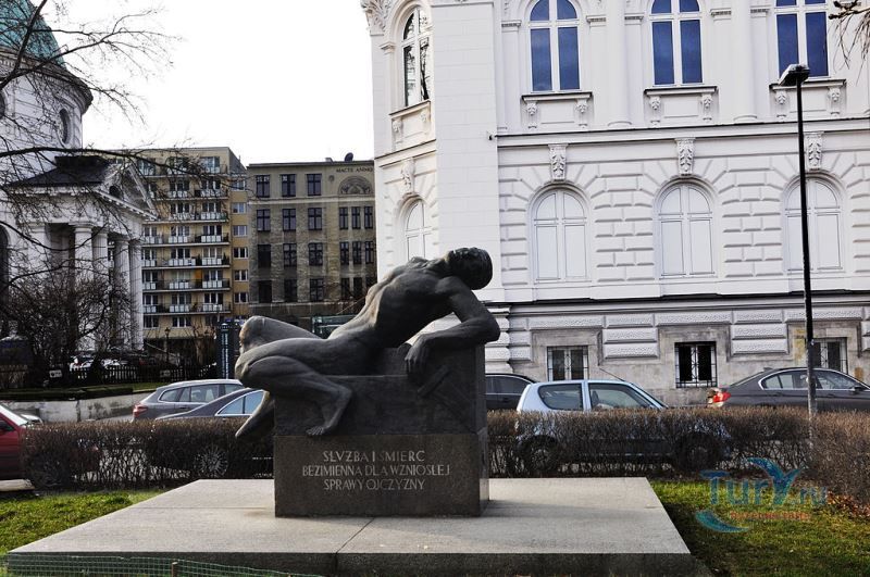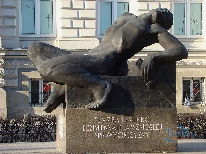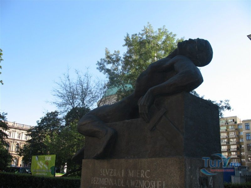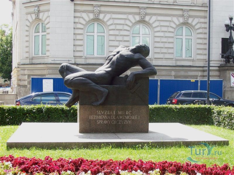 Памятник Пеовиака (Памятник павшим воинам польской военной организации) установлен в честь воинов польской военной организации под командованием Юзефа Пилсудского, которые погибли в 1914-1921 годах. Памятник был выполнен по проекту скульптора Эдварда Виттига и изображает умирающего воина, который в левой руке держит короткий меч. Торжественное открытие памятника состоялось 27 сентября 1933 года. Памятник стоял на месте, где в 1918 году Юзеф Пилсудский с балкона дворца Кроненберга принимал военный парад. В 1940 году статуя была снята немецкими властями и неожиданно пропала без вести. Интенсивные поиски статуи с использованием Малаховского детектора металла не увенчались успехом и статуя не была найдена. Отдельные фрагменты пьедестала и гранитного цоколя памятника впоследствии были обнаружены во дворце Кроликарня. В итоге решили создать точную копию памятника на основе найденных фрагментов, фотографий и по памяти, по проекту скульпторов Марка Модерау и Збигнева Микиелевича. Открытие восстановленного памятника состоялось 11 ноября 1999 года. На постаменте памятника высечена надпись "Служба и смерть безымянных для высоких целей Отчизны".