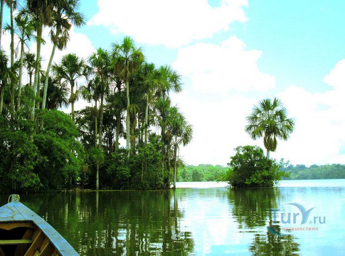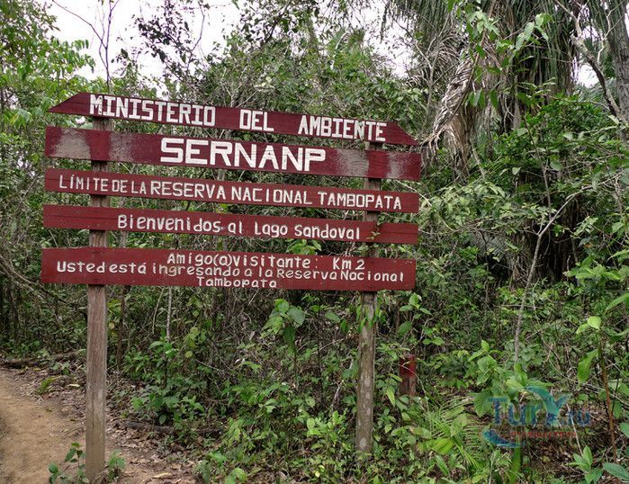 Национальный Заповедник Тамбопата расположен на юго-востоке Перу, на территории регионов Мадре-де-Диос и Пуно. Заповедник был создан в 1990 году с целью сохранения уникальных экосистем и биоразнообразия тропических лесов бассейна реки Тамбопата. Заповедная зона занимает территорию площадью 274690 гектаров, на которой расположены тропические и пойменные леса, реки, озёра и водопады, бамбуковые рощи и болота. В заповеднике Тамбопата обитают 632 вида птиц (южноамериканская гарпия, хохлатый орёл, цапли, гоацины, зимородки, почти все виды попугаев, которые встречаются в Перу, колибри и многие другие), 103 вида млекопитающих, в том числе ягуар, пума, оцелот, гигантская речная выдра, тапир, пекари, двупалые и трёхпалые ленивцы, олени, обезьяны (ревуны, белолобый капуцин, тамарины, мартышки). Биологами определены также 169 видов пресмыкающихся, 103 вида земноводных, 180 видов рыб и огромное число видов насекомых, в том числе 1200 видов бабочек. Флора представлена 1255 видами растений, среди которых много редких и эндемичных. Здесь растут кедр, каштан, бразильский орех, пальмы, бамбук, орхидеи. В заповеднике есть несколько зон, открытых для посещения. В числе самых посещаемых туристами мест - озеро Сандовал, одно из самых красивых озёр в бассейне реки Мадре-де-Диос. Площадь водоёма - 127 гектаров, на его берегах растут пальмовые рощи, вокруг озера, через непроходимые джунгли, проложены туристические тропы, во время похода можно увидеть диких животных и тропических птиц. Скалистые берега реки Тамбопата покрыты глиной, богатой минеральными солями. Каждое утро сюда слетаются тысячи попугаев ара и других птиц, устраивая шумное представление. Птицы едят глину, которая обогащает их организм необходимыми солями. В открытой для посещения территории заповедника развит экотуризм, разработаны увлекательные пешеходные и лодочные маршруты, работают гиды, оборудованы кемпинги, палаточные лагеря, смотровые площадки.