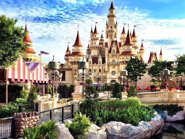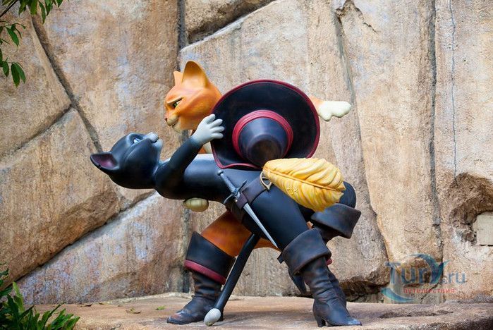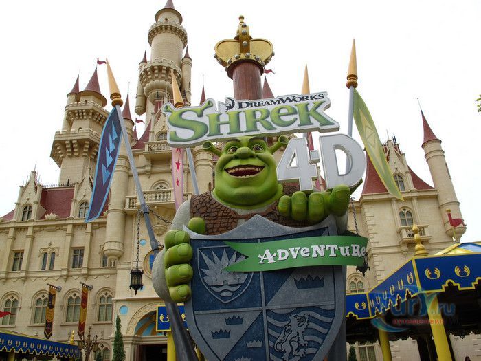 В Тридевятом царстве или Королевстве Шрека всё обустроено по мотивам любимого мультфильма. Здесь можно встретить знакомых персонажей и даже побывать у них дома, стать зрителем музыкального шоу, в котором "выступает" лучший друг Шрека - Осёл, посетить аттракцион со спецэффектами "Шрек-4D" и прокатиться на американских горках, имитирующих сказочный полёт на драконе.