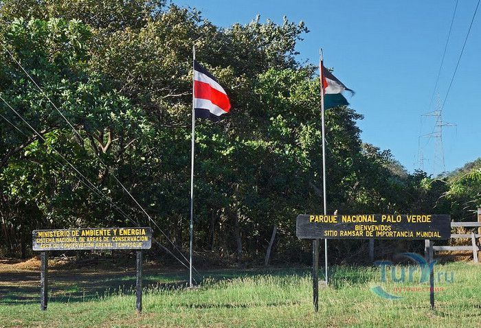 Национальный Парк Пало Верде расположен на северо-западе Коста Рики, в кантоне Багакес провинции Гуанакасте. Парк занимает площадь 19800 гектаров лесных и водно-болотных угодий, расположенных между реками Темписк и Бебедеро. Национальный Парк Пало Верде создан в 1990 году с целью защиты лесных массивов и обширной болотистой местности, которая является местом остановки перелётных птиц, с января по февраль здесь наблюдается наибольшая концентрация пернатых в Центральной Америке. Остров Берд, расположенный в середине реки Темписк, является домом для многих видов птиц, здесь гнездятся чёрная венценосная ночная цапля, белый ибис, большой кракс, аисты, туканы, красный ара и другие экзотические птицы. Всего в парке можно встретить более 280 видов птиц. Болота и реки парка облюбовали крокодилы, встречаются пятиметровые экземпляры. В северо-восточной части парка расположен массив лиственных и вечнозеленых сухих тропических лесов, в которых обитают 150 видов млекопитающих (белохвостый олень, скунсы, обезьяны, койоты, агути). Среди пресмыкающихся и земноводных в парке можно встретить игуан, ящериц, змей, в том числе удава обыкновенного и ядовитую гремучую змею, несколько видов древесных лягушек. Флора не менее разнообразна, на территории парка произрастают горький кедр, гваяковое дерево или дерево жизни, мангровые деревья, лианы, кустарники, множество экзотических цветов. Для любителей экологического туризма в парке разработаны пешеходные и водные маршруты, оборудованы места для отдыха и кемпинги.