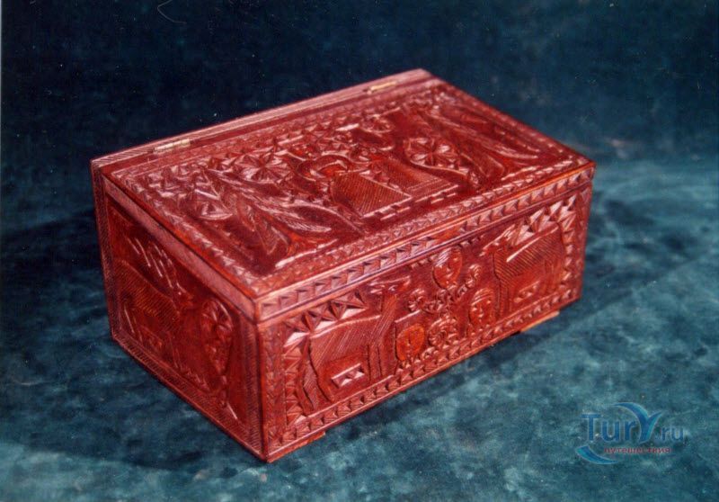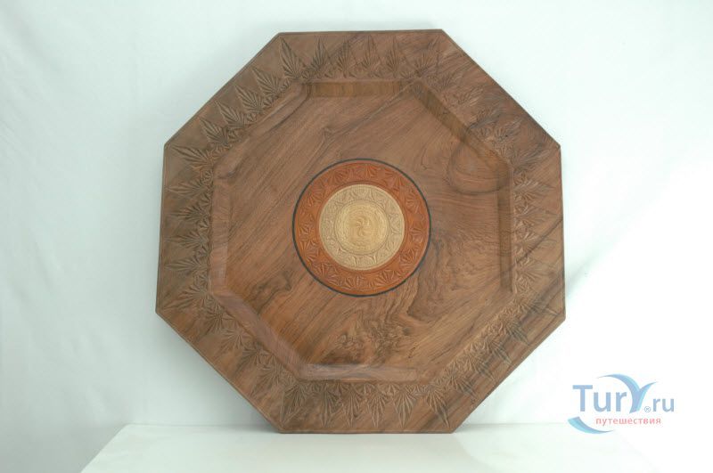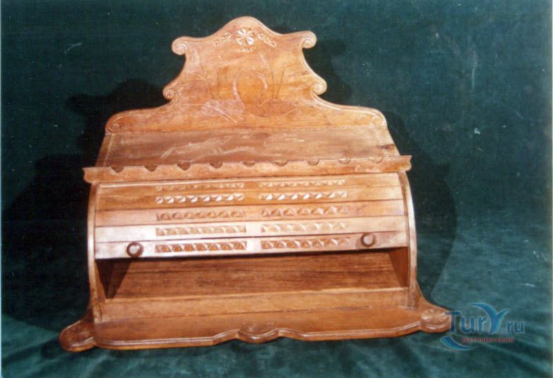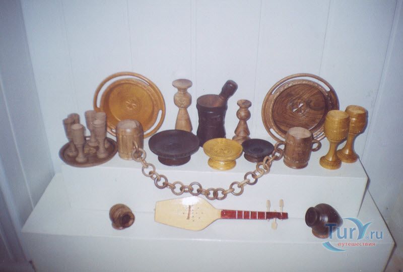 В одном из уголков творческого салона-мастерской уделено место и его работам. Здесь до двухсот экспонатов резки по дереву, в числе которых декоративные панорамы, чаши различной формы, мебель, шкатулки, сувениры.