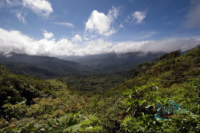 Биологический заповедник Боске Нубосо Монтеверде (Влажный Тропический Лес Монтеверде) расположен в Коста Рике, в провинции Пунтаренас, в предгорьях Кордильера-де-Тиларан. Боске Нубосо Монтеверде - частный заповедник, создан в 1972 году по инициативе жителей деревни Монтеверде, которые отдали для его устройства около трети своей земли. При помощи Фонда охраны природы и Всемирного фонда дикой природы энтузиасты смогли выкупить ещё 328 гектаров, в наши дни территория влажного тропического леса, входящего в состав заповедника, составляет 10500 гектаров. Заповедник находится под управлением Научного тропического центра. Заповедная территория охватывает восемь природных зон, простирается от вершин и гребней континентального водораздела в Монтеверде (1850 метров над уровнем моря) до водораздела Тихого океана и Карибского бассейна (700 метров над уровнем моря). На территории Монтеверде произрастают 3021 вид растений, в том числе 755 видов деревьев, 500 видов орхидей и 200 видов папоротников, многие из которых являются эндемиками Коста Рики. В заповеднике обитают около 130 видов млекопитающих, в числе которых - шесть видов семейства кошачьих, 400 видов птиц, 1200 видов земноводных и пресмыкающихся, многообразие насекомых. Большая влажность и высокие температуры воздуха создают благоприятные условия для жизнедеятельности растительного и животного мира на территории Монтеверде. Для посетителей оборудованы более 13 км туристических маршрутов, смотровая площадка Ла Вентана, с которой открывается панорамный вид на область водораздела Монтеверде. Туристы могут отправиться в путешествие самостоятельно или в сопровождении гида. К услугам посетителей заповедника - увлекательные экскурсии, наблюдение за птицами, ночные туры по тропикам, места для отдыха, ресторан и гостевой дом La Casona (общие и отдельные номера).