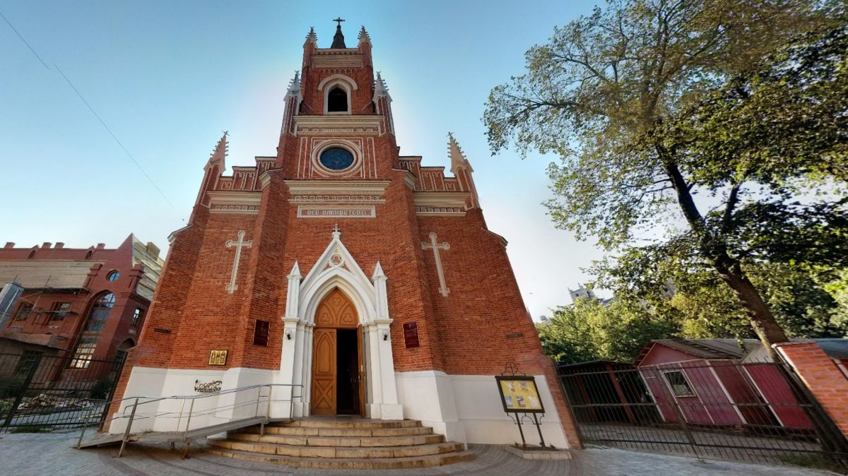 Католический собор Успения Девы Марии в Харькове построен в 1887 – 1892 годах по проекту Б. Г. Михайловского. Костёл построен в неоготическом стиле, имеет высокую колокольню с круглым окном-розеткой на втором ярусе, увенчанную шпилем.